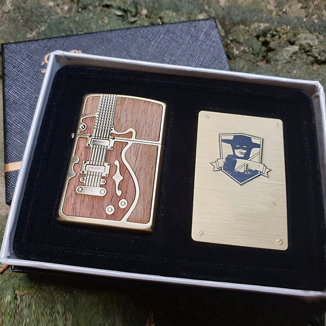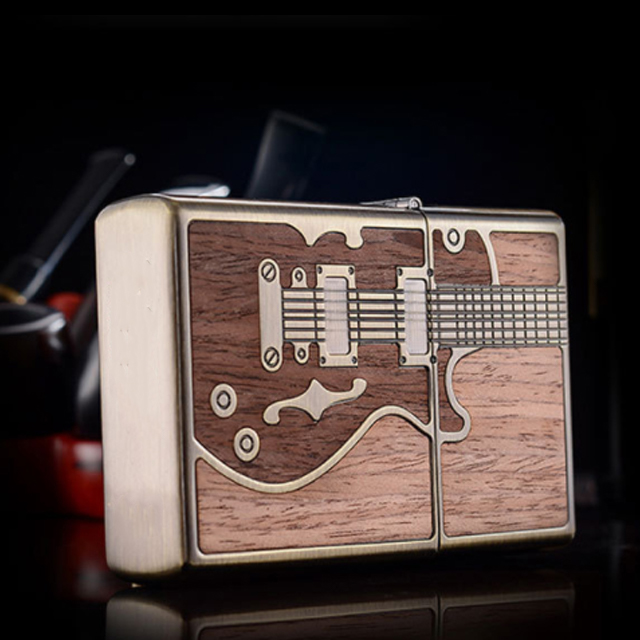 ✨Vỏ Hột Quẹt Bật Lửa Xăng Đá Zorro Ốp Gỗ Z85914 Họa Tiết Hình Cây Đàn Màu Nâu - Dùng Xăng Bấc Đá Cao Cấp