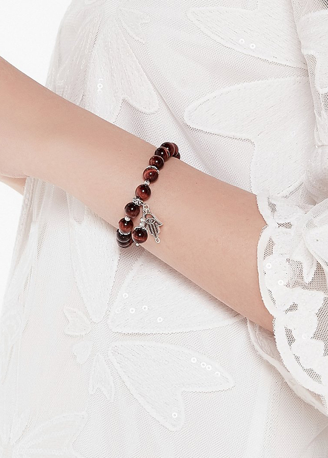 Vòng tay đá mắt hổ nâu đỏ phối charm thánh giá - Hợp mệnh hỏa, mệnh thổ | Ngọc Quý Gemstones |