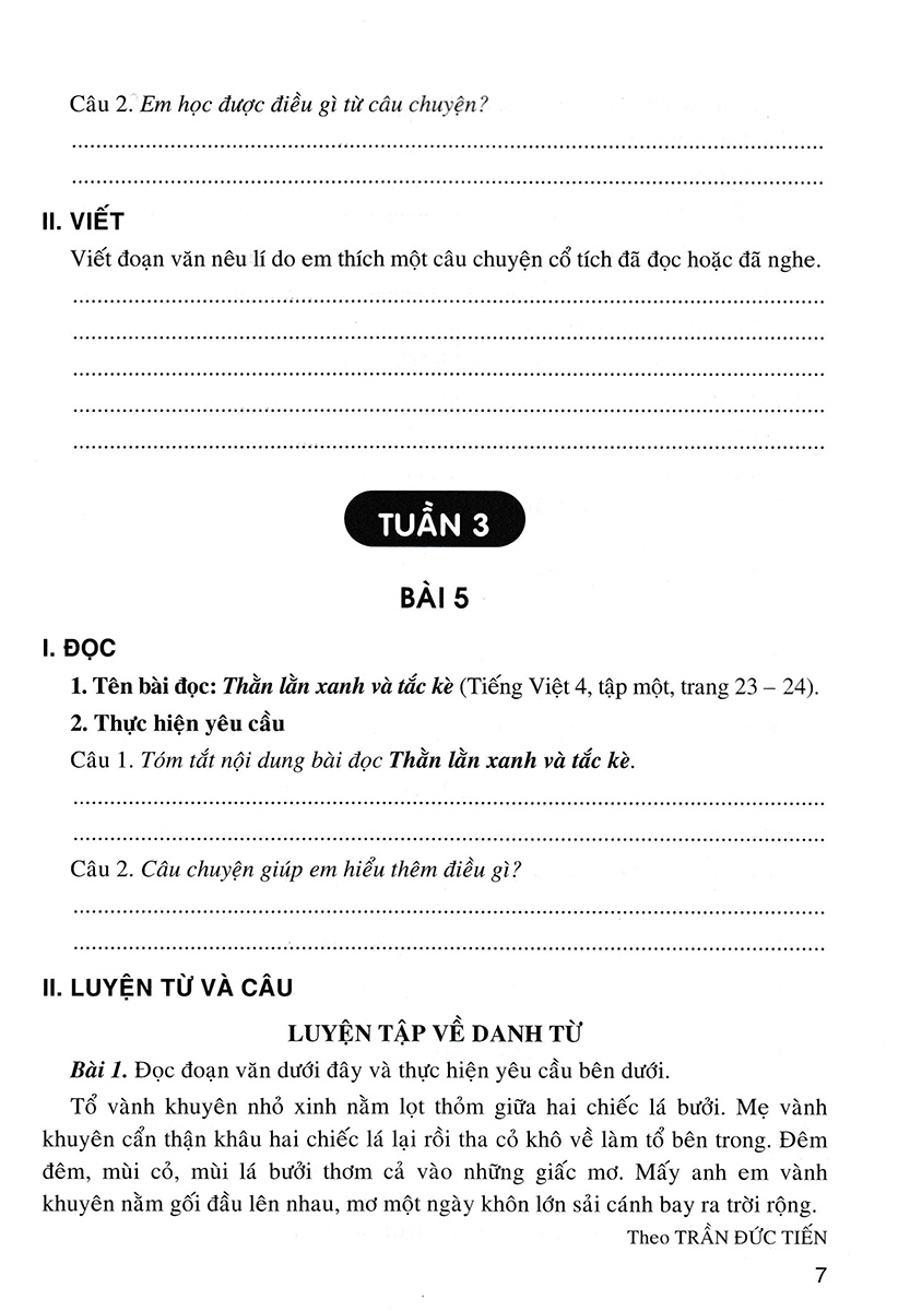 Quyển sách được biên soạn theo đúng chuẩn của Bộ giáo dục và đào tạo, với các bài tập "Tập đọc, luyện từ và câu, viết" sẽ mang đến cho các em nhiều dạng bài để ôn tập và phát triển kĩ năng tư duy khi học bộ môn này.