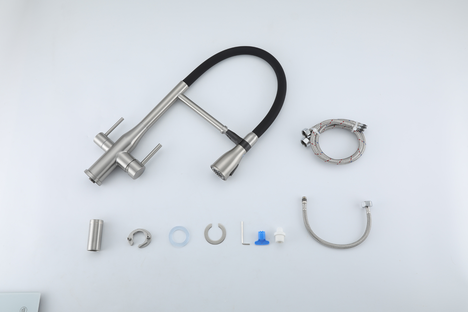 Vòi rửa bát nóng lạnh đầu dây rút, gồm có 2 lựa chọn như sau: Mẫu 1. Mã vòi dây rút R02H, chất liệu inox mờ bền bỉ (màu inox) Mẫu 2. Mã vòi dây