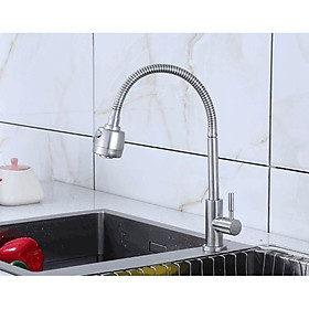 Vòi rửa bát 1 đường nước lạnh, gồm có nhiều lựa chọn như sau: Mẫu 1. Vòi rửa bát lạnh RC4A3 chất liệu inox, thân uốn dẻo, đầu vòi lò xo tăng áp, 2 chế