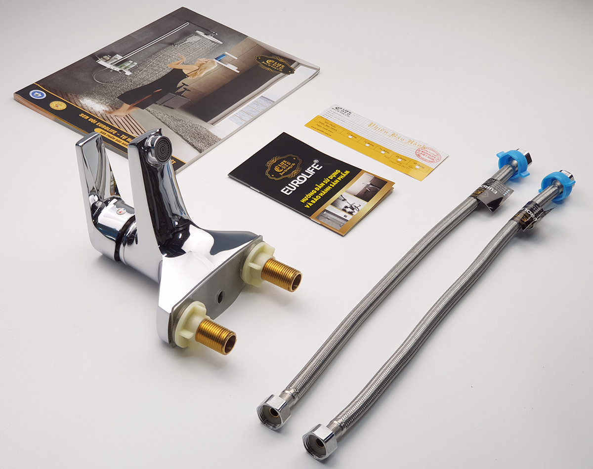 Bộ sản phẩm được đóng gói trong túi vải cotton, hộp màu riêng của Eurolife. Bộ sản phẩm đầy đủ bao gồm : Thân vòi Lavabo, 1 bát gắn, 2 roong cao su, 2 dây cấp 60cm, 1 phiếu bảo hành chính hãng.