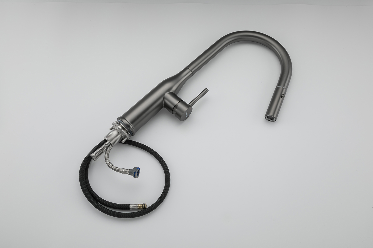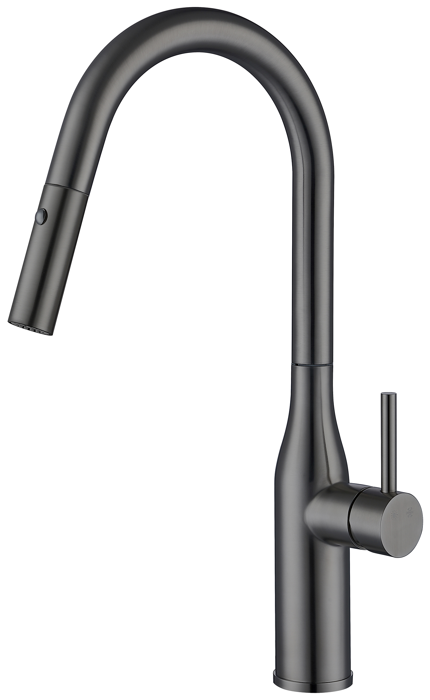 Mã sản phẩm: Artan Grey – Hình dáng: Vòi thiết kế bo tròn, đầu vòi ngang. Tay vòi ngang – Chức năng: Nóng lạnh + Rút dây + 2 chức năng Sprayer (Phun hoa sen,