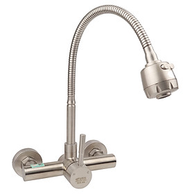 Vòi rửa chén nóng lạnh âm tường cần lò xo Inox SUS304 Eurolife EL-T017AT (Trắng bạc)