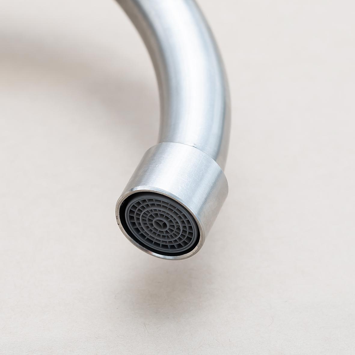 Thiết kế bền đẹp, ống quay 360 độ dùng cho chậu 2 hố Đầu vòi được thiết kế với dòng nước xoắn, tạo bọt, không gây bắn nước khi sử dụng, tiết kiệm nước tối đa.