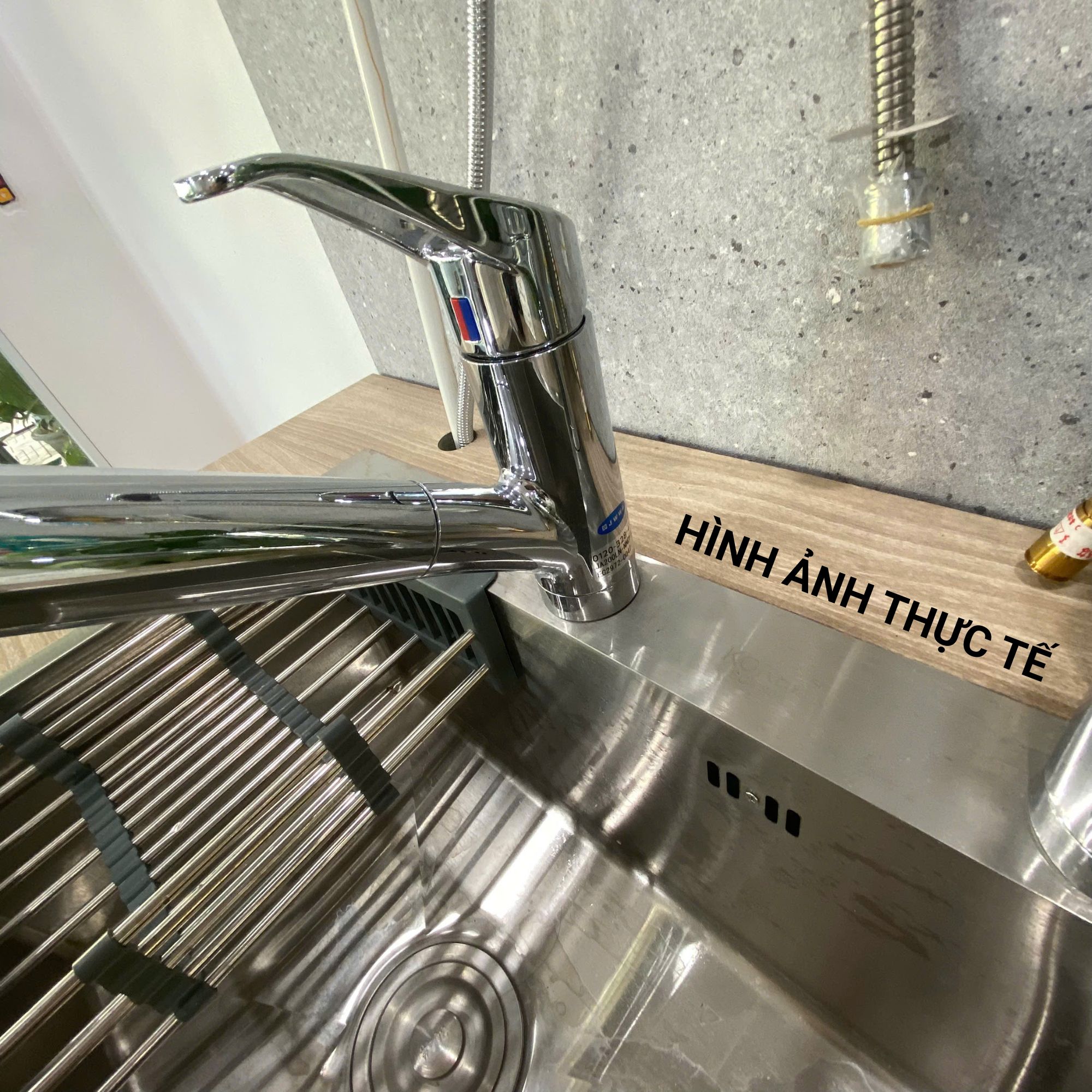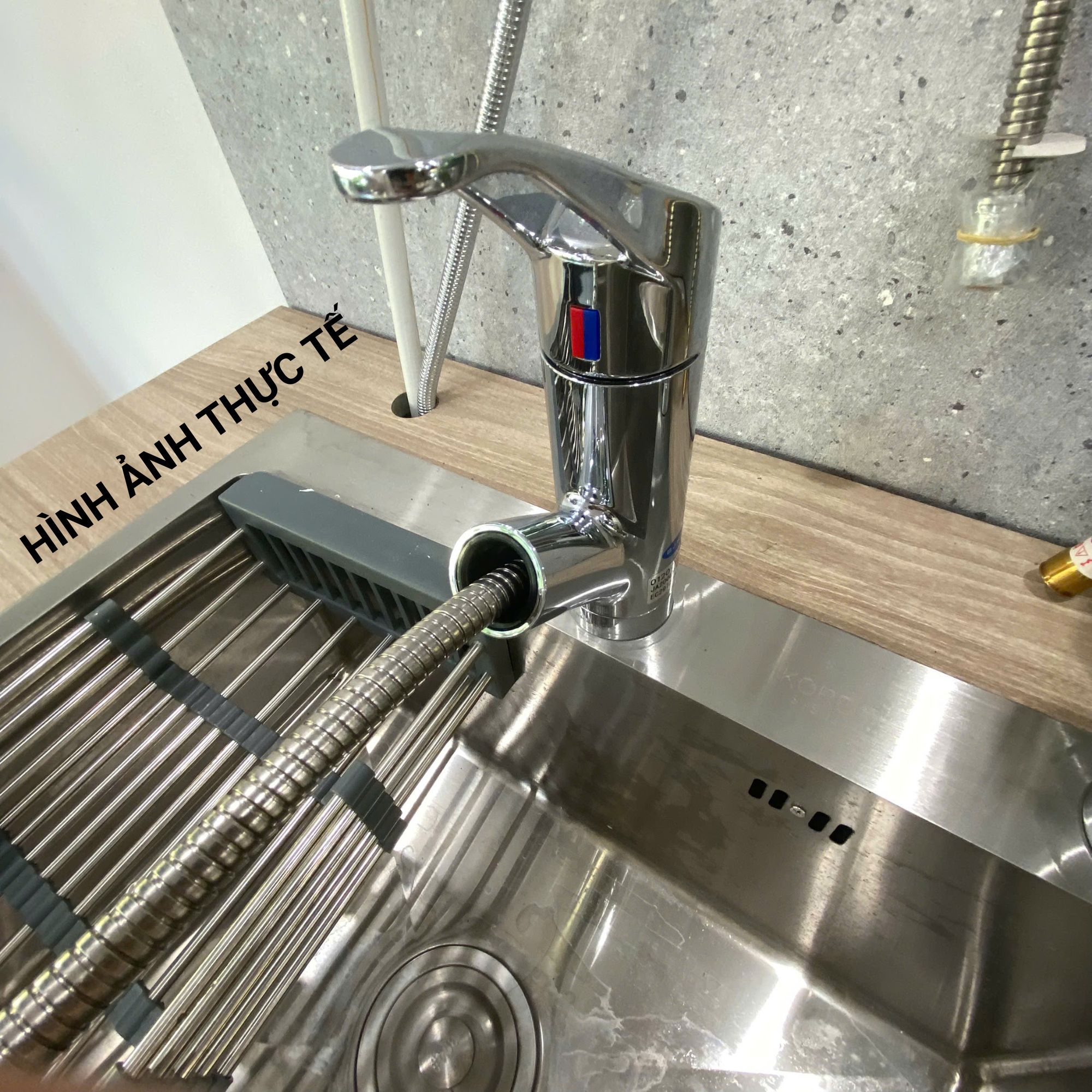Chất liệu: Inox 304 Thiết kế 2 đường nước nóng lạnh Đầu vòi rửa có thể kéo dài Đầu vòi tạo bọt, giúp tiết kiệm nước và hạn chế bắn nước khi sử dụng Vòi