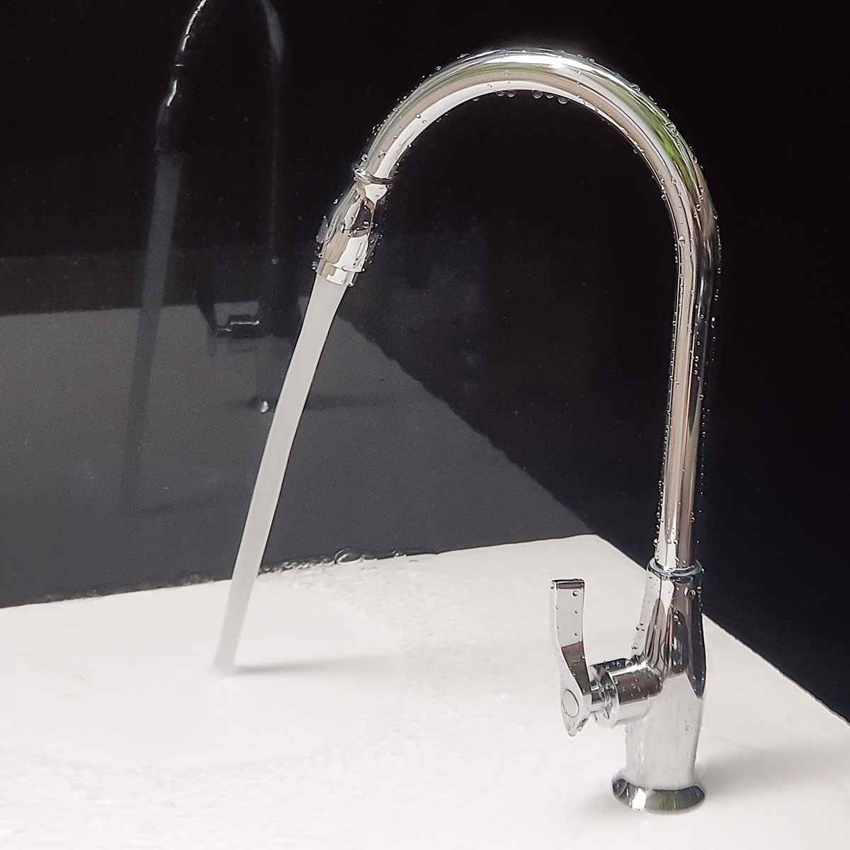 Ống vòi quay 360 độ, điều hướng dòng chảy mợi nơi theo yêu cầu. Ống quay 360 độ lên thân vòi có thể lắp cho tay cầm mở nguồn nước bên trái, bên phải hay nằm mặt trước vòi đều được.