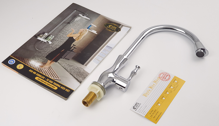 Vòi rửa chén lạnh Đồng mạ Chrome Eurolife EL-T014 (EL-RC03)* Hãng sản xuất : Eurolife Việt Nam* Chất liệu : Sản phẩm được đúc trọng lực bằng hợp kim đồng 61%, mạ Chrome và Niken (Ni -10micro, Cr-0.3m...