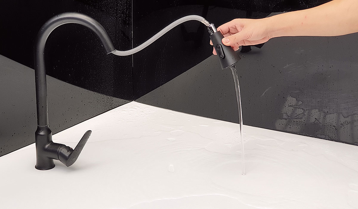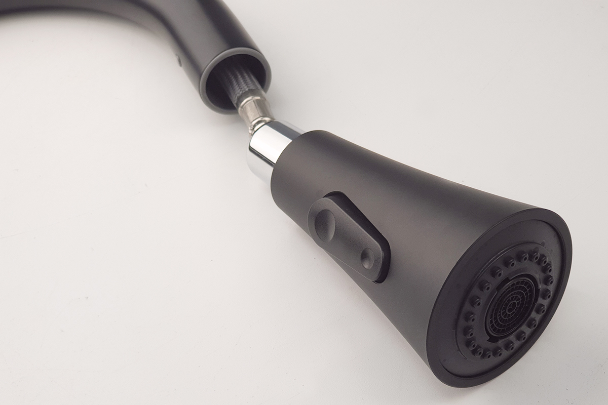 Mã sản phẩm: Artan Grey – Hình dáng: Vòi thiết kế bo tròn, đầu vòi ngang. Tay vòi ngang – Chức năng: Nóng lạnh + Rút dây + 2 chức năng Sprayer (Phun hoa sen,