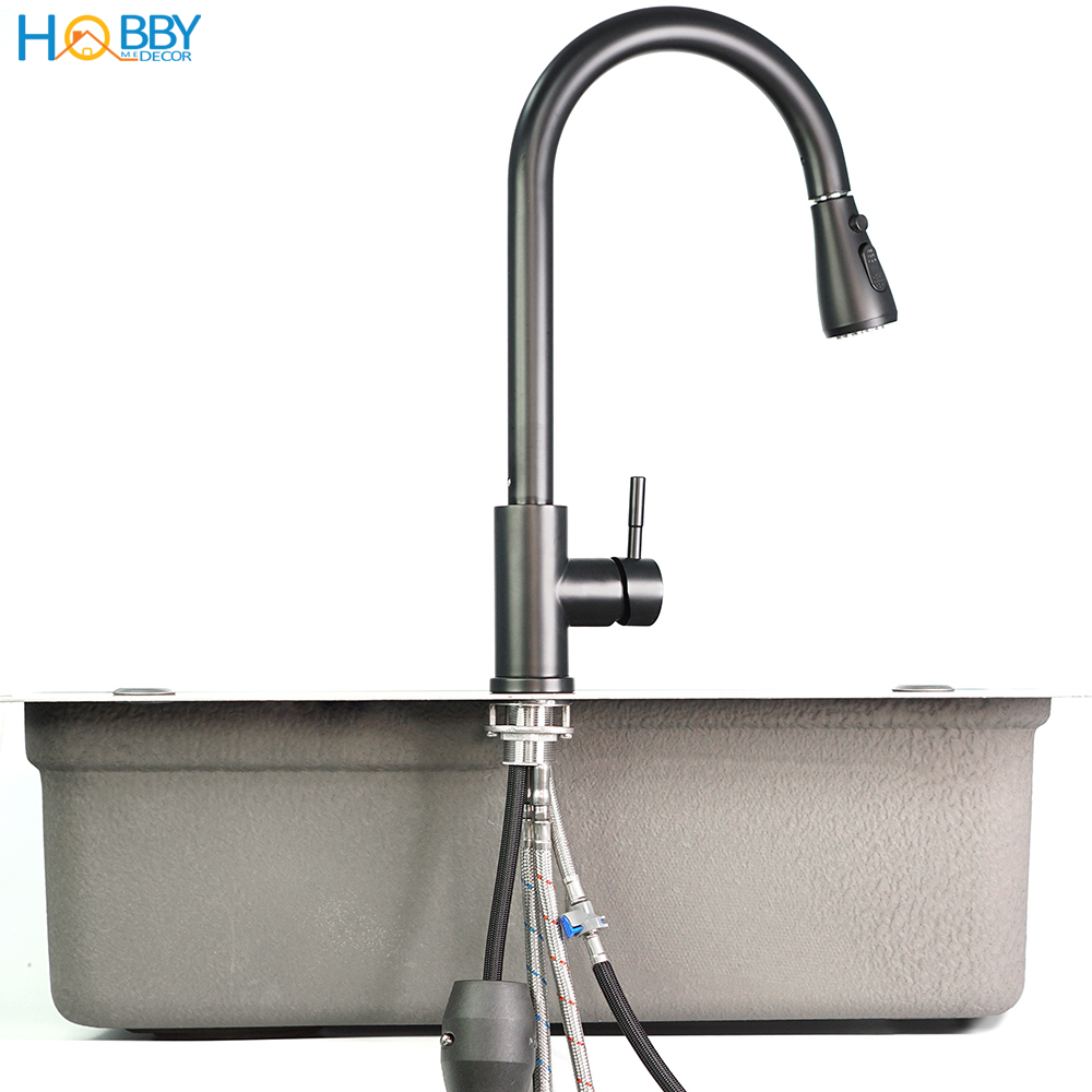✨Vòi rửa chén nóng lạnh Inox 304 dây rút 3 chế độ Hobby Home Decor VDR6