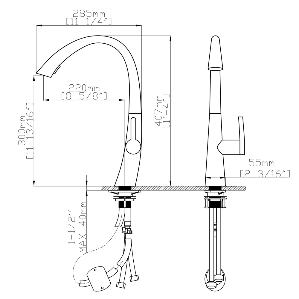 Thông số kỹ thuật: Chất liệu: Inox 304 Thiết kế 2 đường nước nóng lạnh Đầu vòi rửa có thể kéo dài Đầu vòi tạo bọt, giúp tiết kiệm nước và hạn chế bắn nước