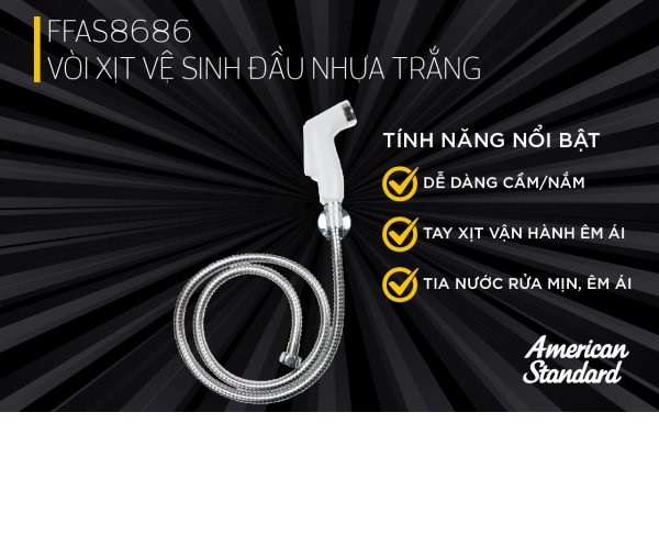 Vòi xịt vệ sinh  American Standard - FFAS8686 (đầu nhựa lõi đồng, dây xịt mạ crom )Vòi xịt vệ sinh  American Standard - FFAS8686 (đầu nhựa lõi đồng, dây xịt mạ crom )Vòi xịt vệ sinh  American Standard - FFAS8686 (đầu nhựa lõi đồng, dây xịt mạ crom )Vòi xịt vệ sinh  American Standard - FFAS8686 (đầu nhựa lõi đồng, dây xịt mạ crom )