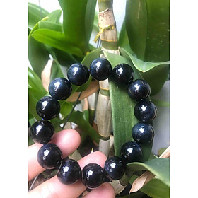 VÒNG TAY ĐÁ ĐEN ÁNH XANH SIZE 14MM CHO NAM
