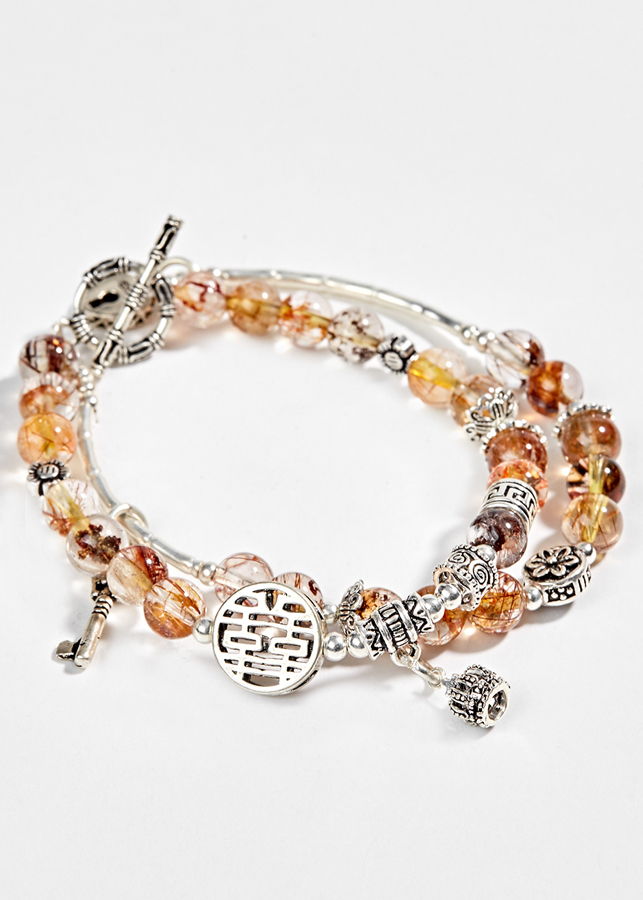 VÒNG TAY 2 LINE ĐÁ THẠCH ANH DÂU PHỐI CHARM HOA BẠC: Thạch Anh Dâu hay "Mũi tên của thần Tinh Yêu" đã không ít lần khiến mỗi ai khi chiêm ngưỡng phải ngạc nhiên