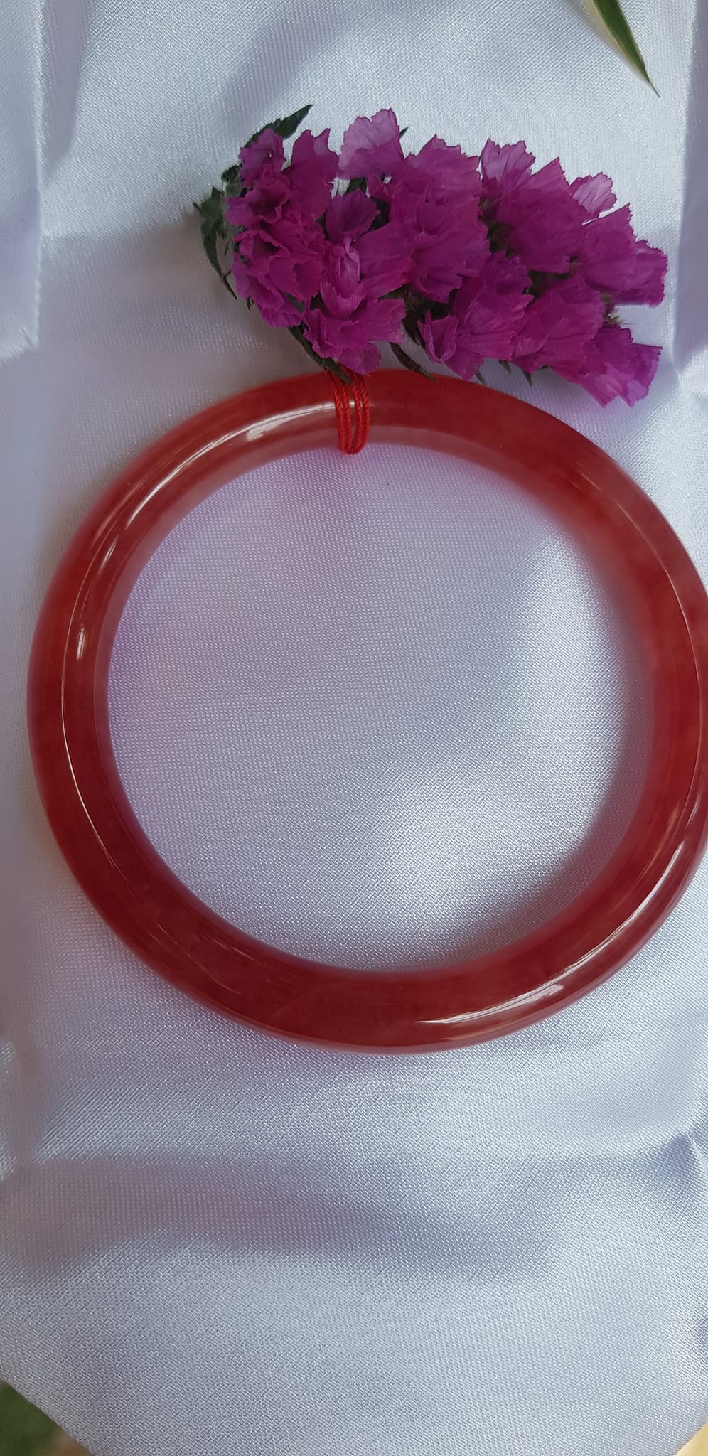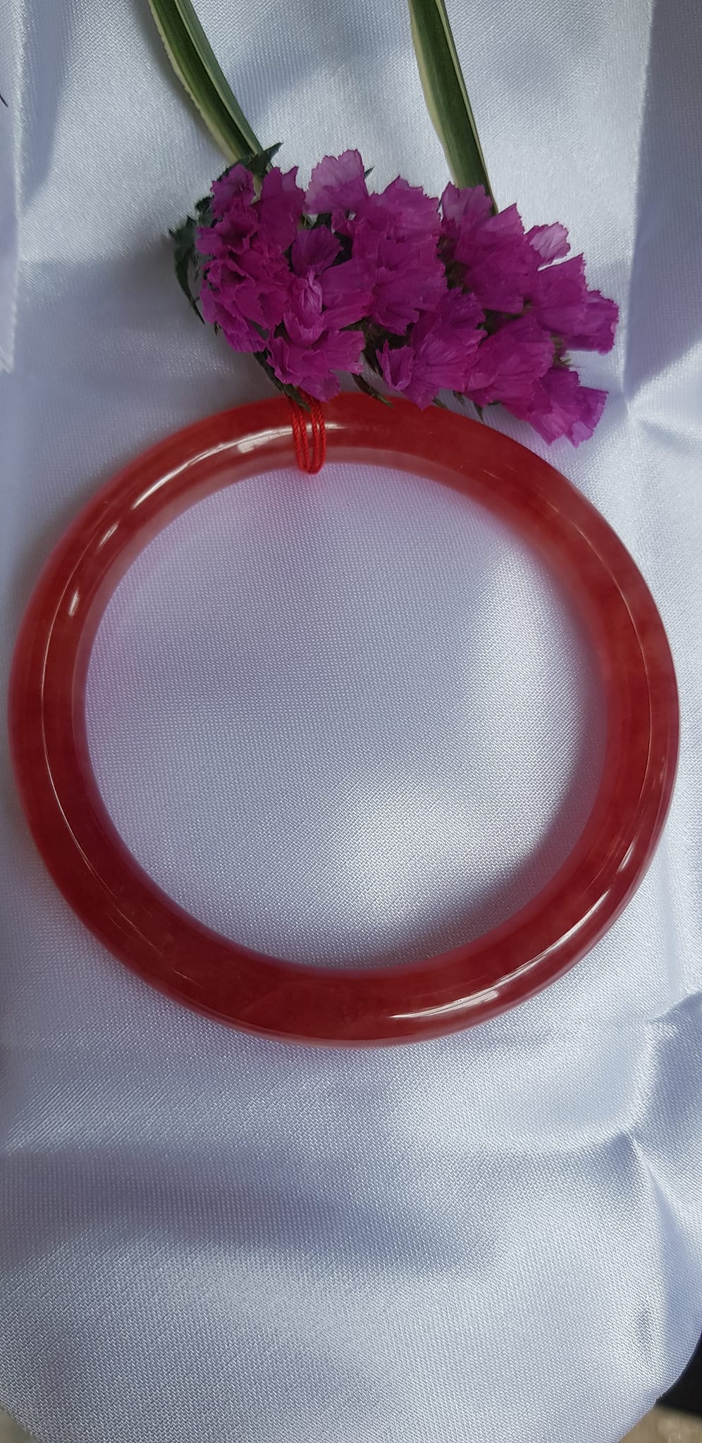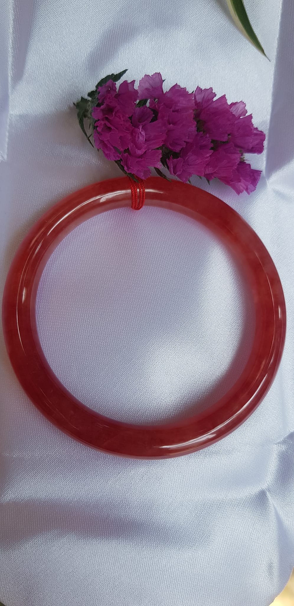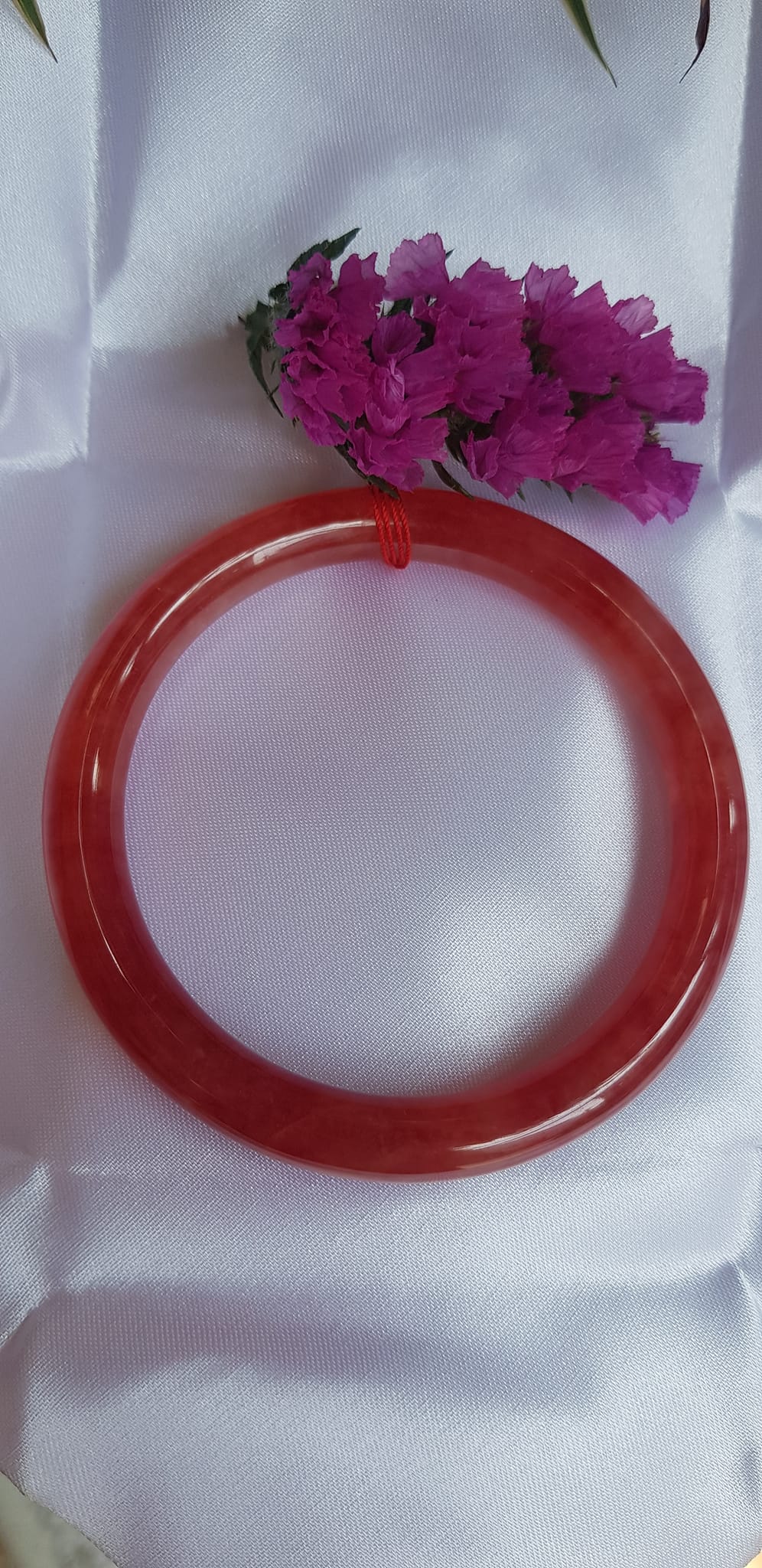 Vòng Cẩm Thạch Đỏ đẹp A 58mm x cọng 8mm Màu đỏ tươi sáng bóng mượt đỏ là màu chiến thắng chuẩn hợp nữ mạng hỏa mạng thổ Nữ nặng 55kg - 68kg đeo đẹp