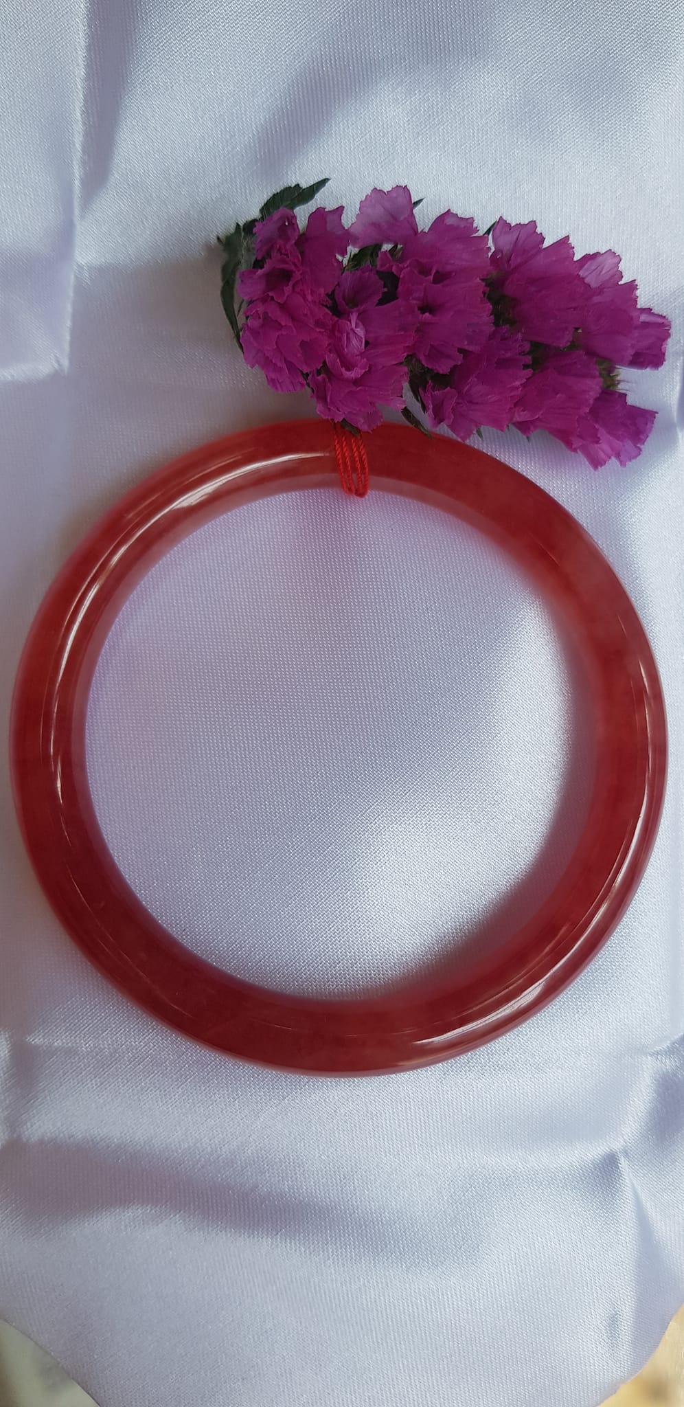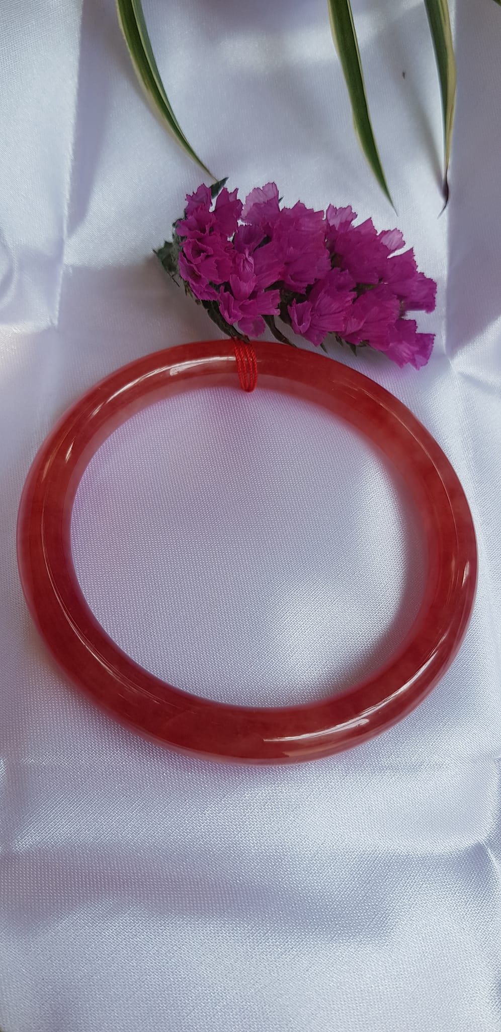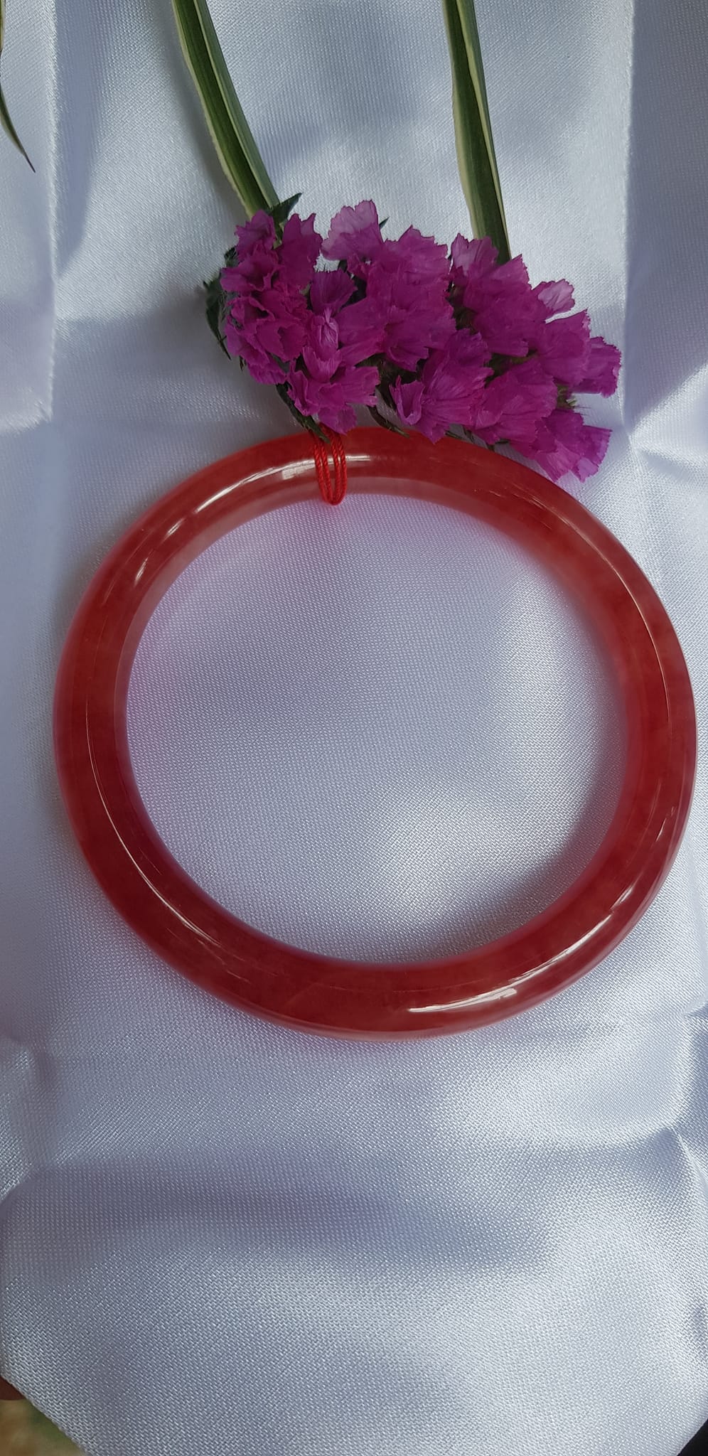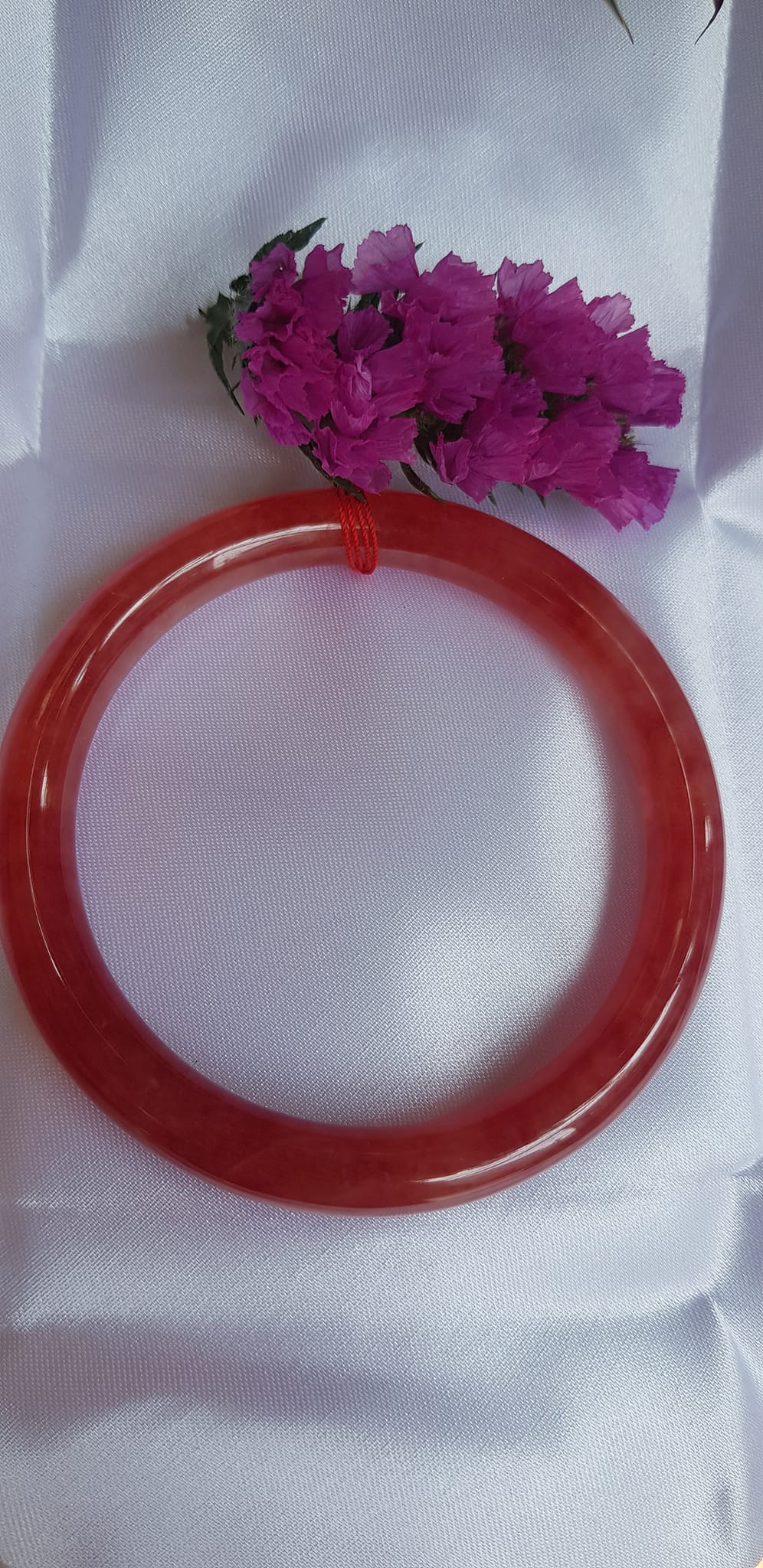 Vòng Cẩm Thạch Đỏ đẹp A 58mm x cọng 8mm Màu đỏ tươi sáng bóng mượt đỏ là màu chiến thắng chuẩn hợp nữ mạng hỏa mạng thổ Nữ nặng 55kg - 68kg đeo đẹp