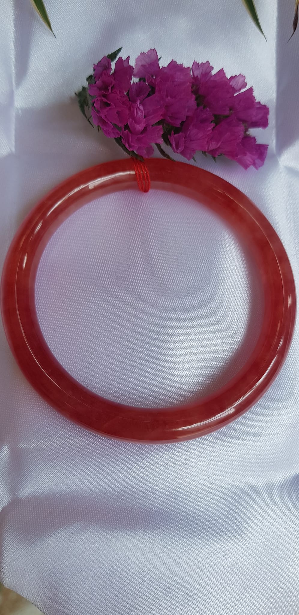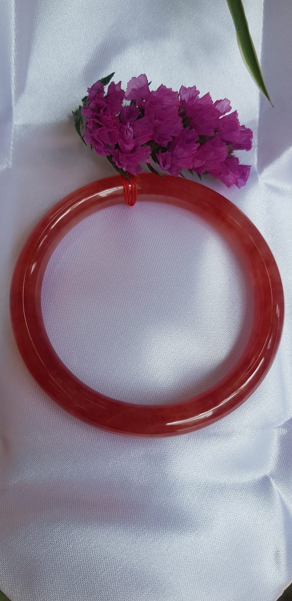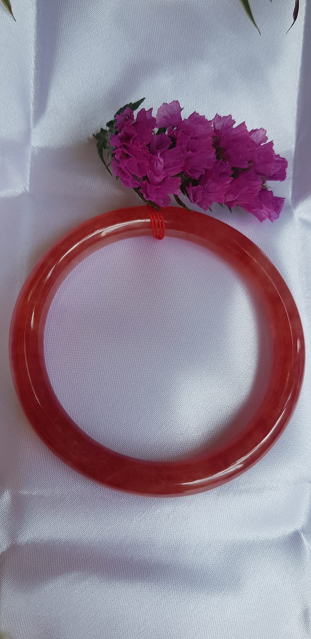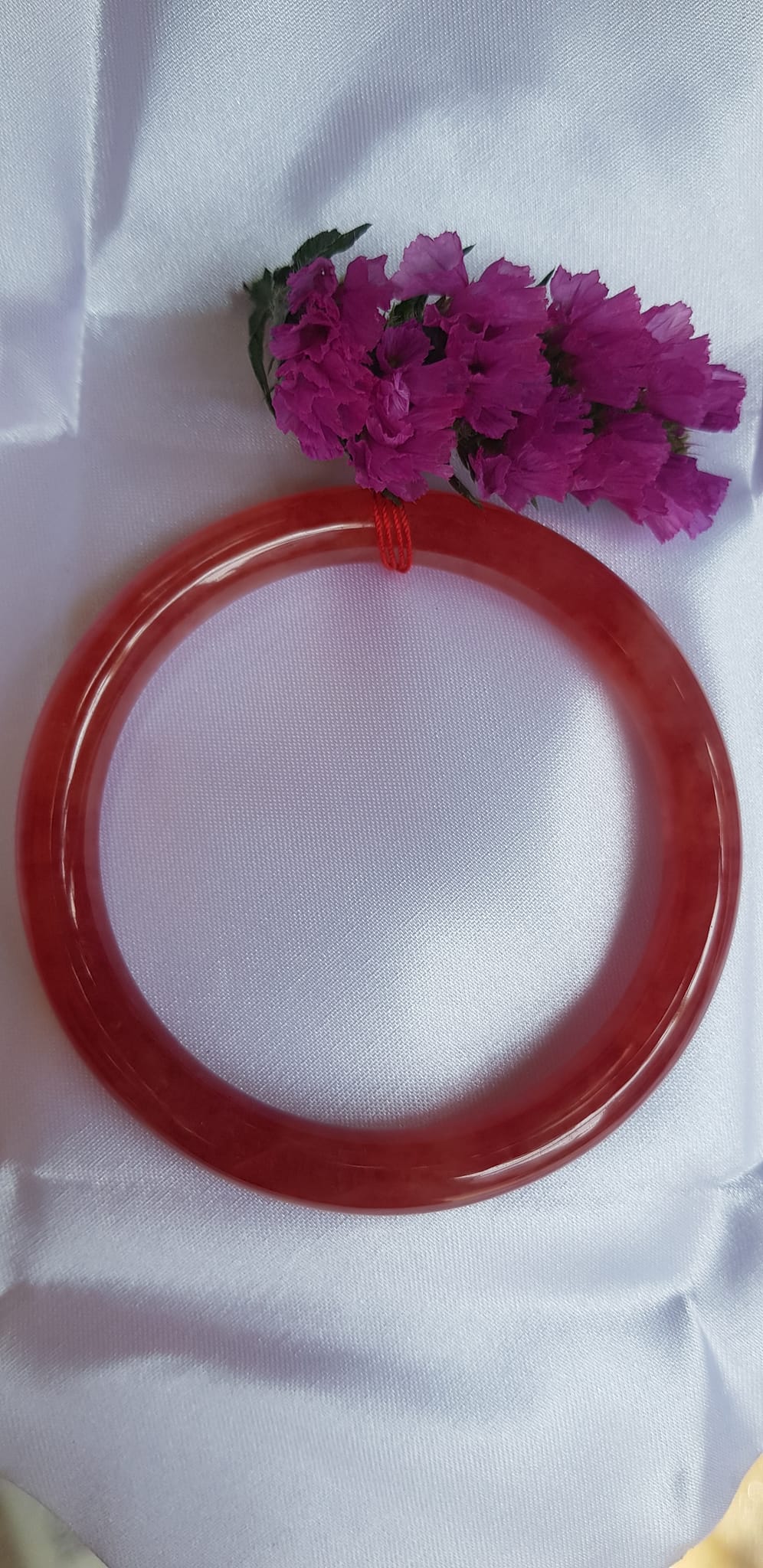 Vòng Cẩm Thạch Đỏ đẹp A 58mm x cọng 8mm Màu đỏ tươi sáng bóng mượt đỏ là màu chiến thắng chuẩn hợp nữ mạng hỏa mạng thổ Nữ nặng 55kg - 68kg đeo đẹp