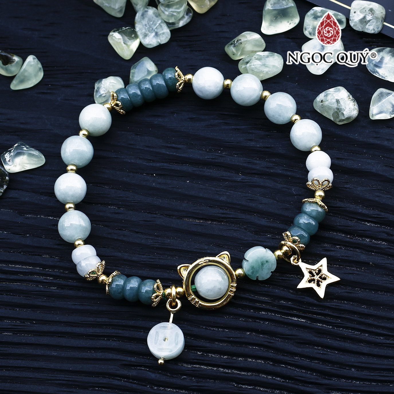✨Vòng cẩm thạch phỉ thúy phối lam ngọc charm bạc mạ vàng - Ngọc Quý Gemstones