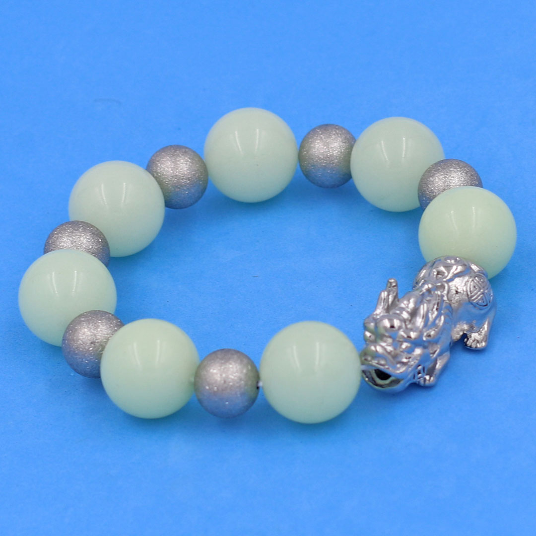Thông tin sản phẩm : Vòng chuỗi đeo tay đá dạ quang 14 ly ( size lớn ) charm tỳ hưu và bi inox, vòng tay chuỗi hạt