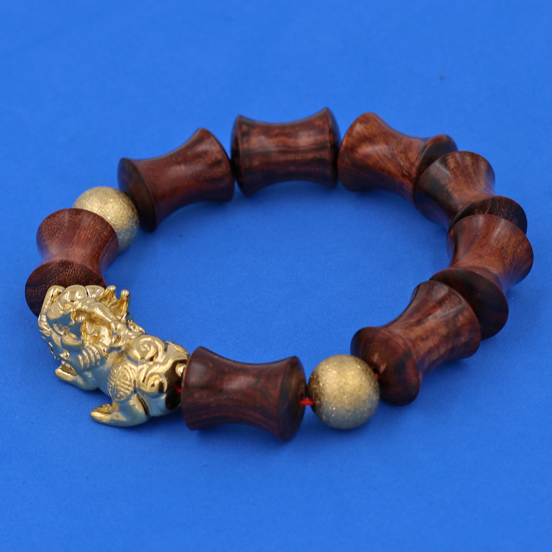 Thông tin sản phẩm : Vòng chuỗi đeo tay gỗ tử đàn ống tre ( size lớn ) charm tỳ hưu và bi inox vàng, vòng tay chuỗi hạt