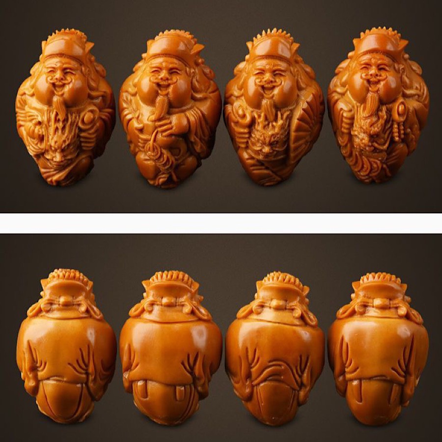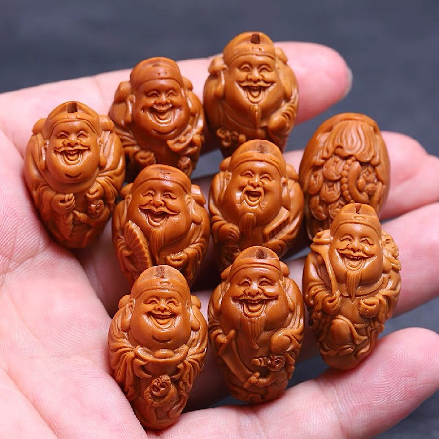 - Độc đáo : mỗi hạt chạm khắc 1 vị thần tài cầm 1 bảo vật khác nhau .