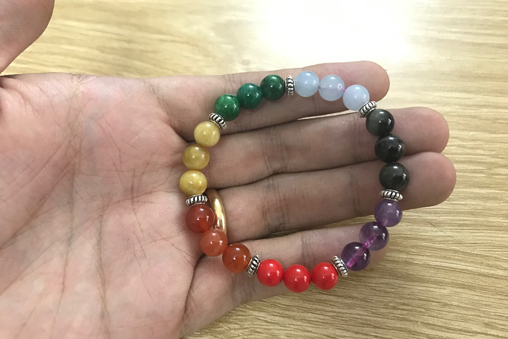 Vòng tay 7 Chakra kết hợp giữa 7 loại đá tự nhiên mix Charm bạc 925