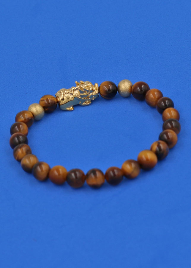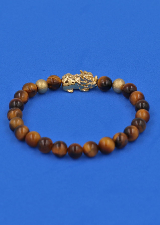 Vòng đá mắt hổ vàng nâu được làm từ đá mắt hổ vàng nâu, đây là loại biến thể phổ biến nhất trong tự nhiên. Màu nâu vàng trong phong thủy ngũ hành thuộc hành Thổ. Vì vậy, vòng đá mắt hổ vàng nâu hợp với những người mệnh Thổ và mệnh Kim.