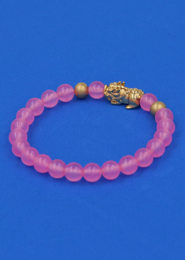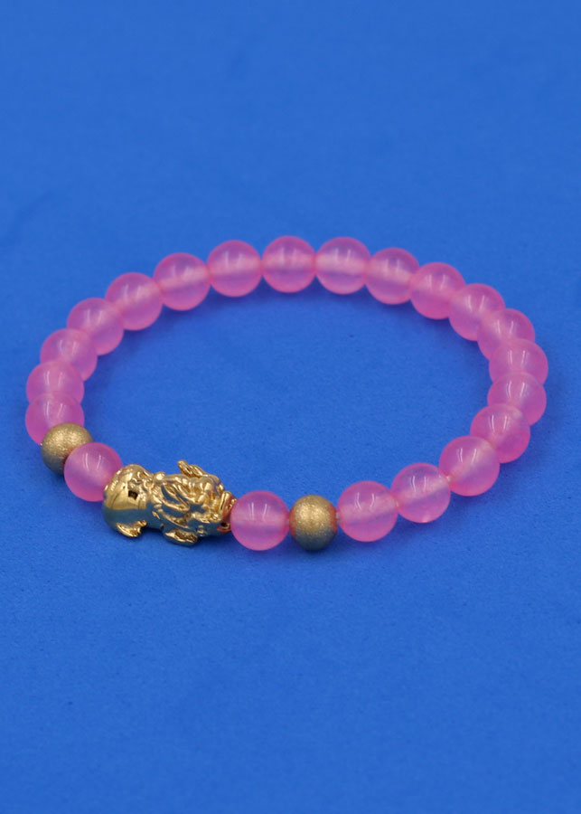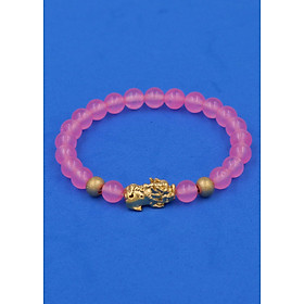 ✨Vòng đeo tay Thạch Anh Hồng Phấn 6 ly cẩn Tỳ Hưu inox vàng VTAHPTHHBV6 HỘP NHUNG - hợp mệnh Hỏa, mệnh Thổ