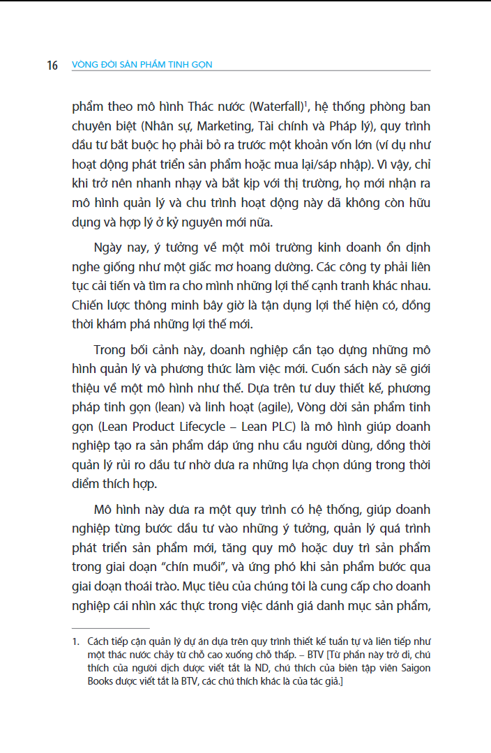 Vòng đời sản phẩm tinh gọn là một cuốn sách cung cấp các phương pháp và công cụ để phát triển các sản phẩm và mô hình kinh doanh mới sáng tạo trong khi quản lý danh mục đầu tư cốt lõi của bạn. Thực hiện theo 6 giai đoạn chính của vòng đời sản phẩm: Ý tưởng - Khám phá - Hợp lệ - Phát triển - Bền vững - Quay lại. Và khám phá cách phát triển sản phẩm theo giai đoạn cuộc đời của chúng và đảm bảo đầu tư đúng mức cho từng sản phẩm được giao. Có một hướng dẫn từng bước về các phương pháp phát triển sản phẩm tốt nhất bằng cách sử dụng các ví dụ và nghiên cứu điển hình từ một số công ty và công ty khởi nghiệp.