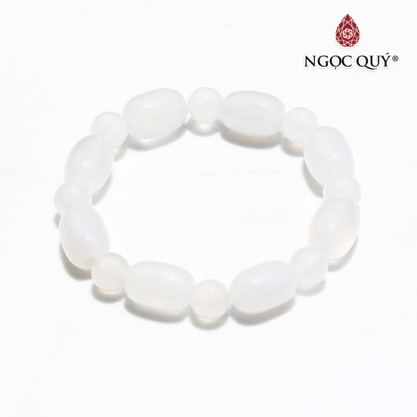 Vòng tay lu thống đá mã não trắng - Hợp mệnh kim, mệnh thủy | Ngọc Quý Gemstones |