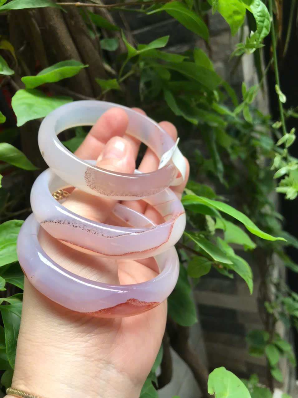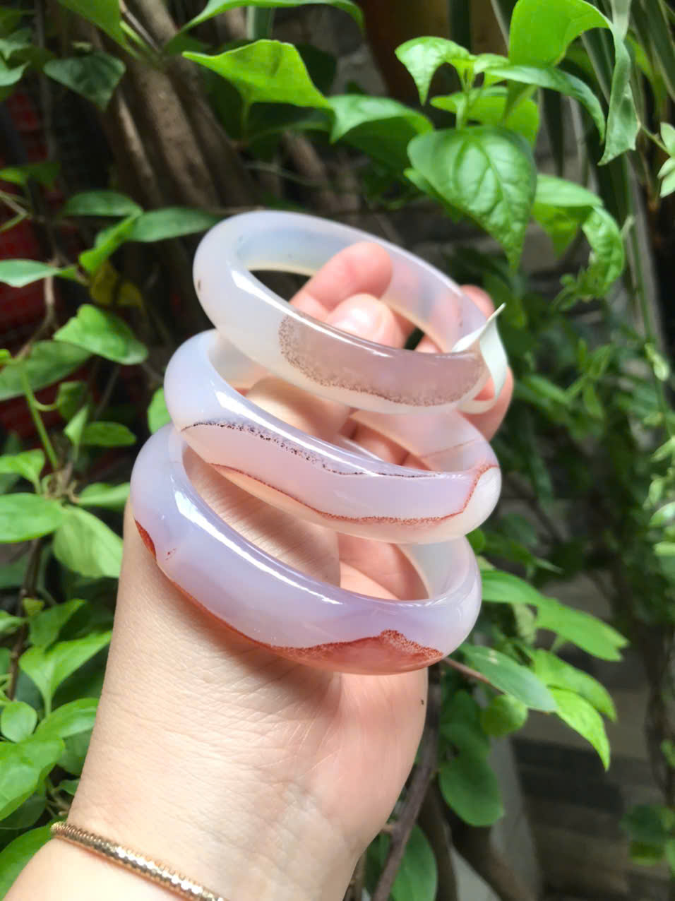 Vòng tay Nữ Bản Hẹ Mới Đá Mã Não Bông Tuyết Hồng nhẹ trắng trong bóng quá đẹp luôn ạ Ni 53mm x Cao 11mm x dầy 7mm Nữ Cân nặng 52kg - 55kg đeo