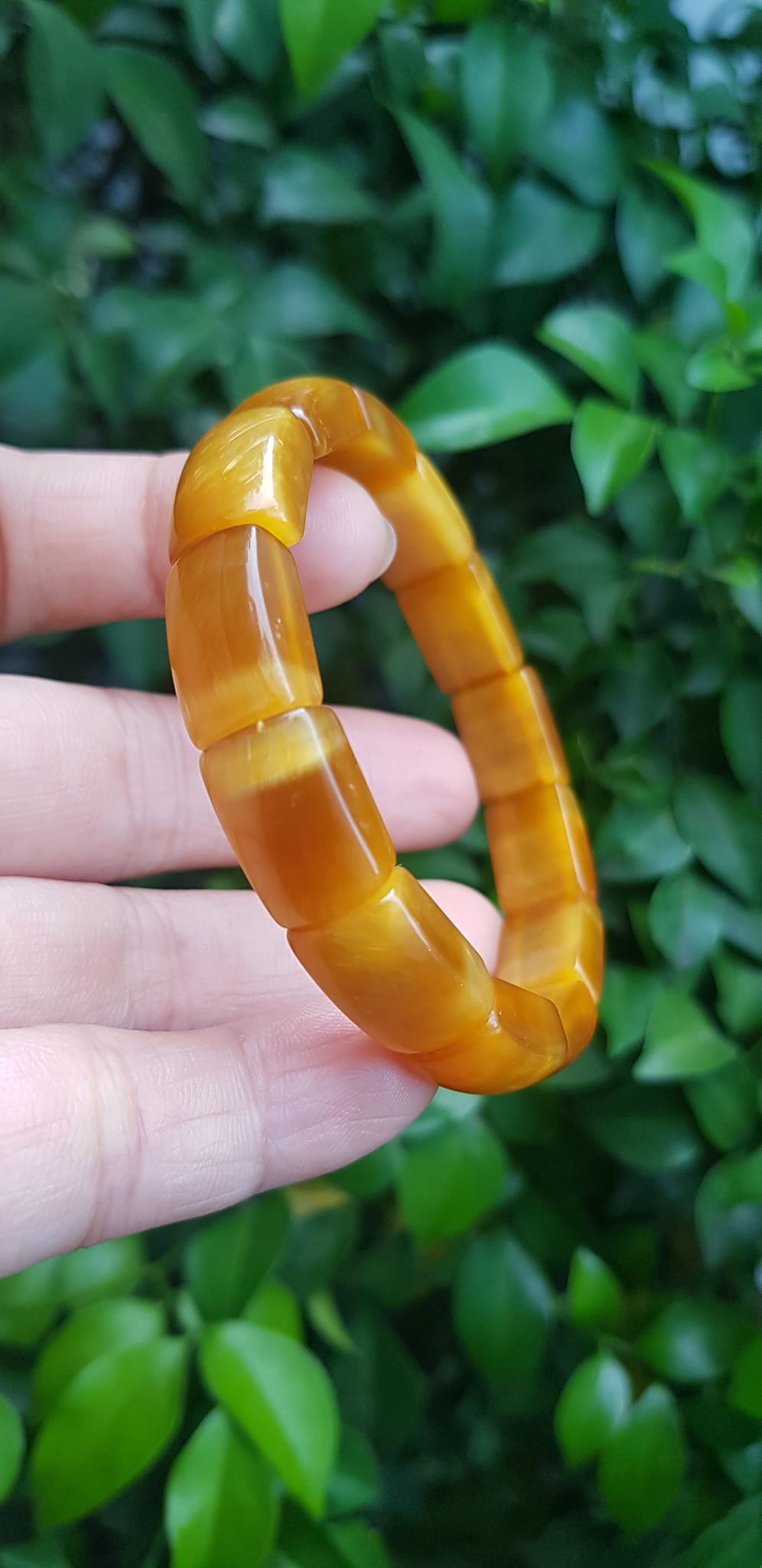 Vòng tay lu thống đá mắt hổ vàng nâu hợp mệnh kim và mệnh thổ