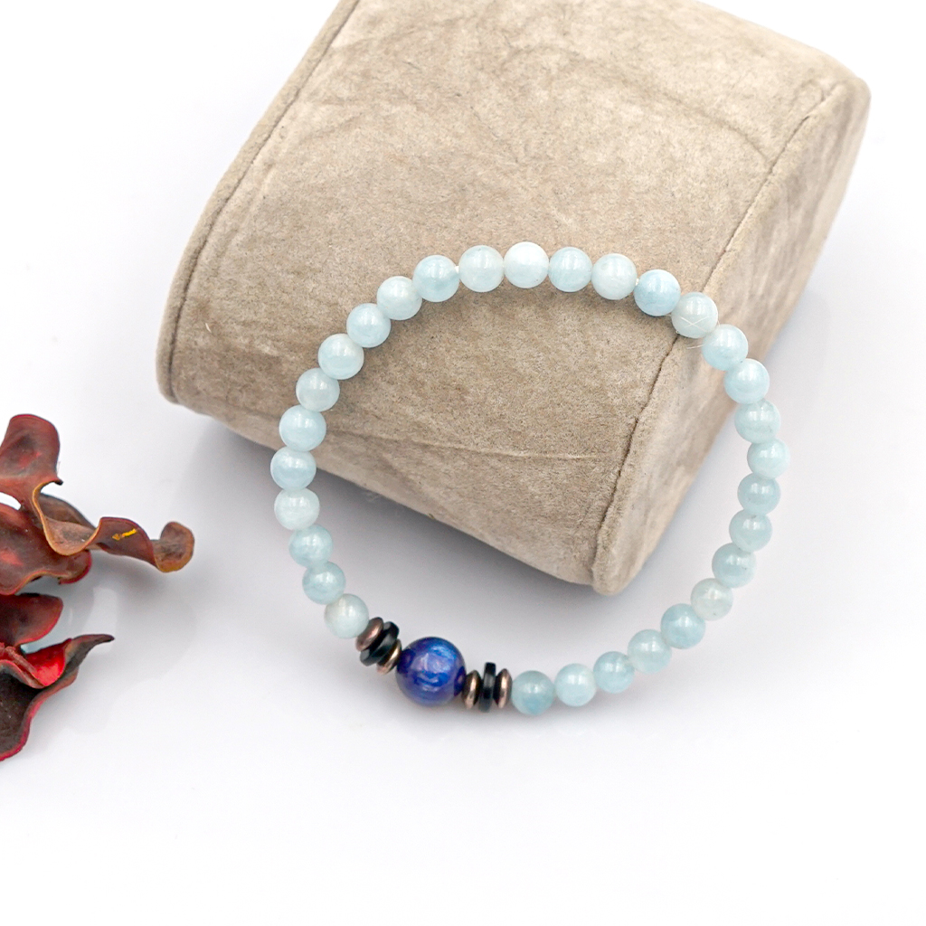 VÒNG TAY ĐÁ AQUAMARINE PHỐI HỒ LY MẠ VÀNG: Aquarmarine là một loại đá thuộc họ Beryl, sở hữu màu xanh tuyệt đẹp của biển cả, là món quà mà nàng tiên cá dành tặng