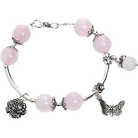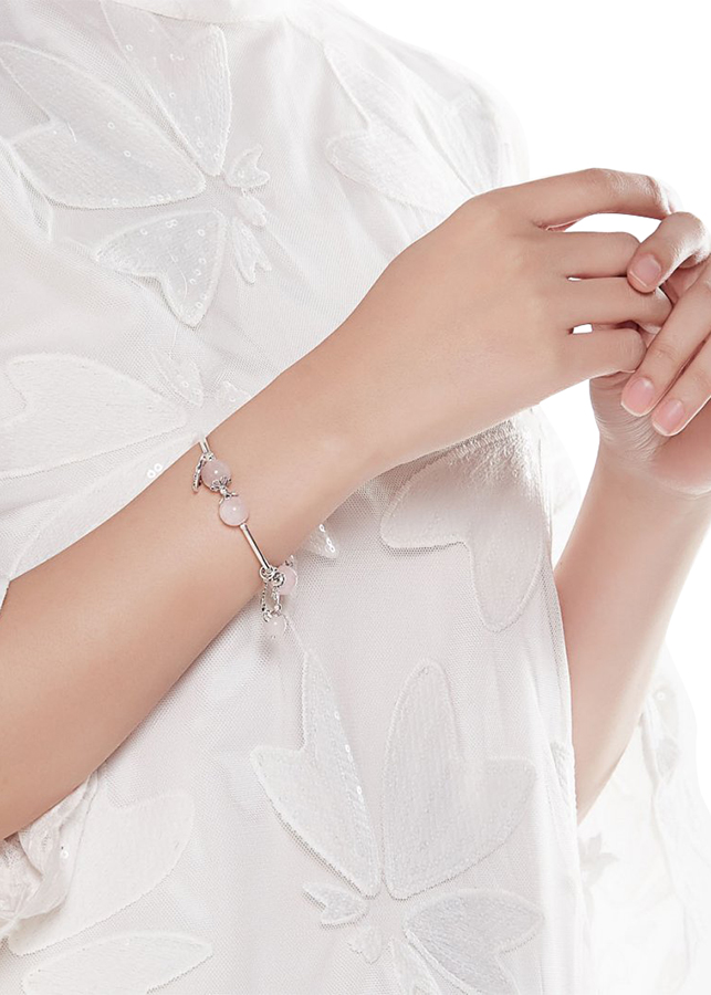 Vòng Thạch Anh Hồng mix charm bạc