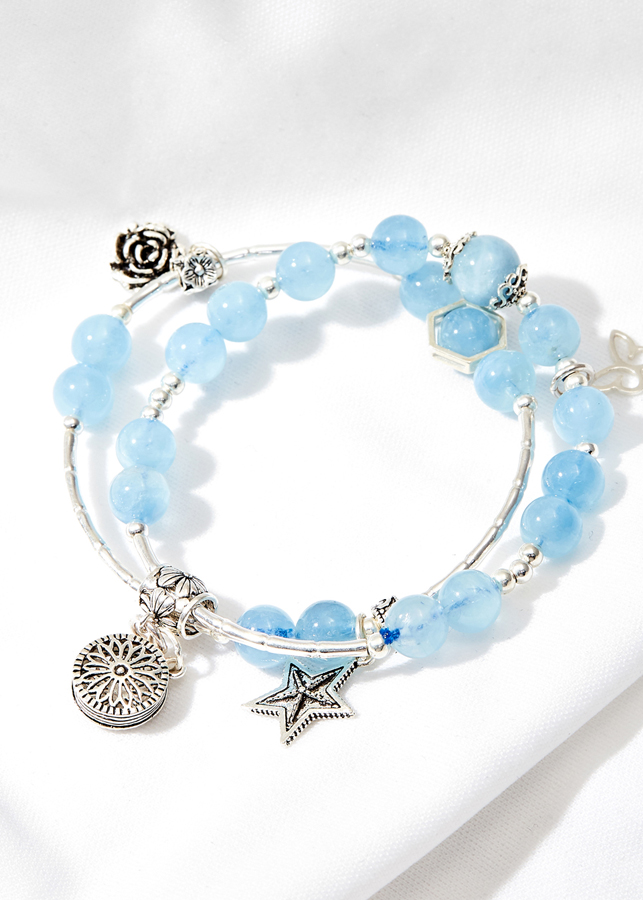 Vòng tay đá hải lam ngọc mix charm bạc - Hợp Mệnh Thủy & Mộc [ Ngọc Quý ]