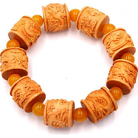 Kích thước : 9 hạt gỗ khắc hình trụ rồng 20mm x 20mm, đá thạch anh : 8 ly, vòng chuỗi dài 252mm