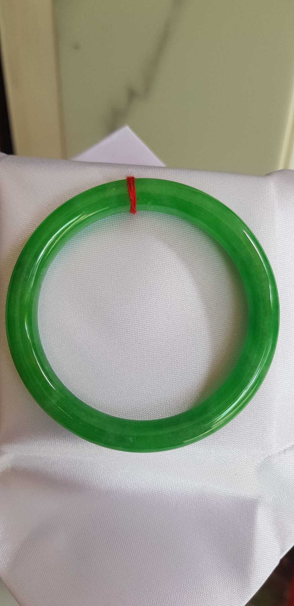 Vòng cẩm thạch Đ Lý 52mm x dầy 7,8mm màu xanh lá tươi hợp Nữ mệnh Mộc mệnh Hỏa 52kg - 56kg đeo ạ