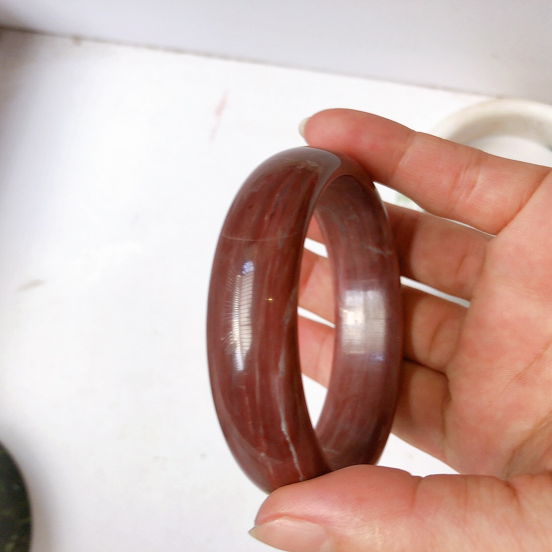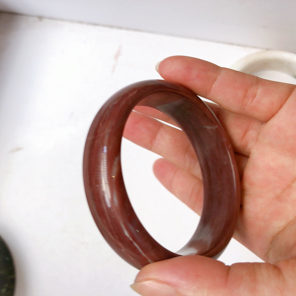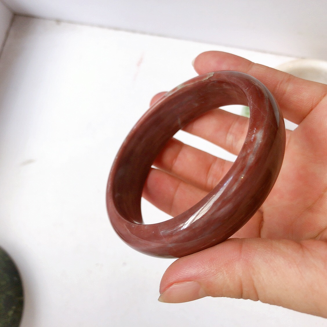 Chất liệu: Đá ngọc Canxide 100% đá tự nhiên khai thác và chế tác tại Việt Nam Kích thước: Nhiều size từ  5.6  cm  Màu sắc Đỏ booc đô chất đá ngọc sáng  Tác dụng: Dòng đá (cẩm thạch) đá tự nhiên canxide được chọn tỉ mỉ từ những tảng đá tự nhiên nguyên khối. Tác dụng phong thủy: Các nhà thạch học trị liệu ngày nay cho rằng: Đá Serpentine có sự giao động tinh thể nên nó phát ra một nguồn năng lượng dương có khả năng chống lại năng lượng â tác dụng hỗ trợ tái tạo tế bào và bổ sung các mức năng lượng, giúp điều trị chứng đau đầu, chứng ngủ lịm, làm xương mau liền. Nó còn tác động đến luân xa vùng tim, điều trị huyết áp, tiểu đường. Nó cũng giúp cân bằng hệ tiêu hóa, làm sạch và giúp giải độc cơ thể dài tuổi thọ và giúp giảm chứng mất trí nhớ ở người già. Hỗ trợ hấp thu Canxi và Magiê. Và thực tế trong sinh hoạt hàng ngày bức xạ điện thoại, máy tính, sóng wifi, khói bụi, tivi, lò vi sóng… nếu nhìn nhận ở góc độ phong thủy thì đó cũng là một thể loại của năng lượng âm rất mạnh vì nó ảnh hưởng tiêu cực đến sức khỏe của con người. Tuy nhiên, năng lượng dương của đá bán quý tự nhiên 100% lại mạnh hơn nhiều và có công năng triệt tiêu năng lượng âm này (đá thường, đá nhân tạo hay bột đá, hoặc đá tự nhiên nhưng đã qua xử lý nung nhiệt sẽ không có năng lượng dương). Vì vậy, mang đá bên mình hoặc để ở nơi làm việc hoặc để trong không gian sống của gia đình … sẽ có tác dụng thanh lọc và hỗ trợ tích cực đối với sức khỏe. Với thiền định nó được cho là có năng lượng mạnh mẽ, giúp người sở hữu tìm thấy sự bình an trong nội tâm, khơi gợi lòng nhân ái, giúp tạo ra sự cởi mở chân thành, chi phối cảm xúc và trí tưởng tượng. Đặc biệt, có khả năng bảo vệ chủ nhân tránh các tác động tiêu cực từ phía những người khác. Theo lương y Nguyễn Huy, ở các loại đá quý và đá bán quý đều có sự dao động tinh thể thường trên 300.000 lần/giây.Trong quá trình dao động như thế, chúng phát ra năng lượng hóa giải các sóng có hại và làm ổn định sóng sinh học của cơ thể, giúp cơ thể hoạt bát và cân bằng. Sự dao động tinh thể càng cao thì càng tốt cho sức khỏe con người. Bác sỹ, nhà cảm xạ học Dư Quang Châu cho rằng “đá không phải là vật vô tri, đá cũng biết "thở". Đá sinh ra từ trường nên có thể hút tà khí, sinh dưỡng khí, người chơi đá phải hiểu biết công năng của đá”. Cách sử dụng: Không nên đeo vòng quá rộng, vì vậy khi đeo nên thoa lớp kem tay cho trơn tru sau đó lau sạch lớp kem. Không nên ngâm vòng trong chất tẩy rửa thường xuyên.