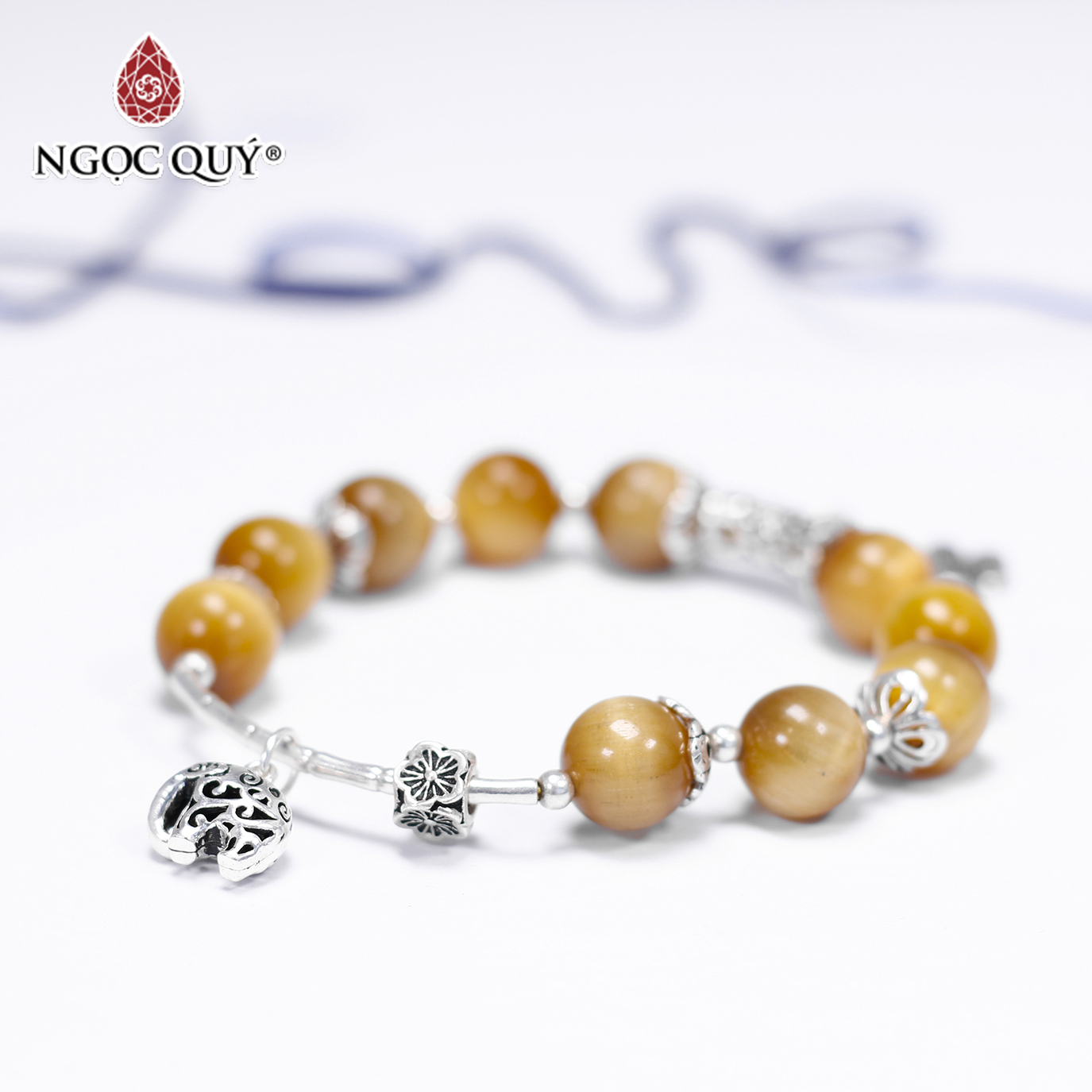 ✨Vòng tay đá mắt hổ vàng tâm phối charm hoa bạc size hạt 10mm mệnh thổ , kim - Ngọc Quý Gemstones