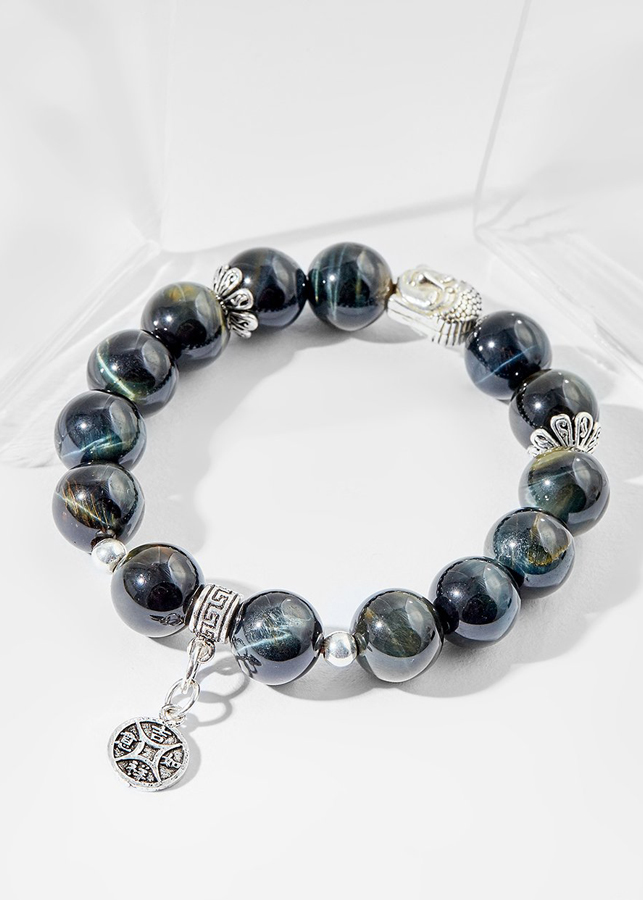 Vòng tay đá mắt hổ xanh đen charm tiền mang trên người có ý nghĩ xua tan phiền não, lo lắng. Ngoài ra nó còn mang mang đến sự lạc quan vui vẻ, hạnh phúc và may mắn.