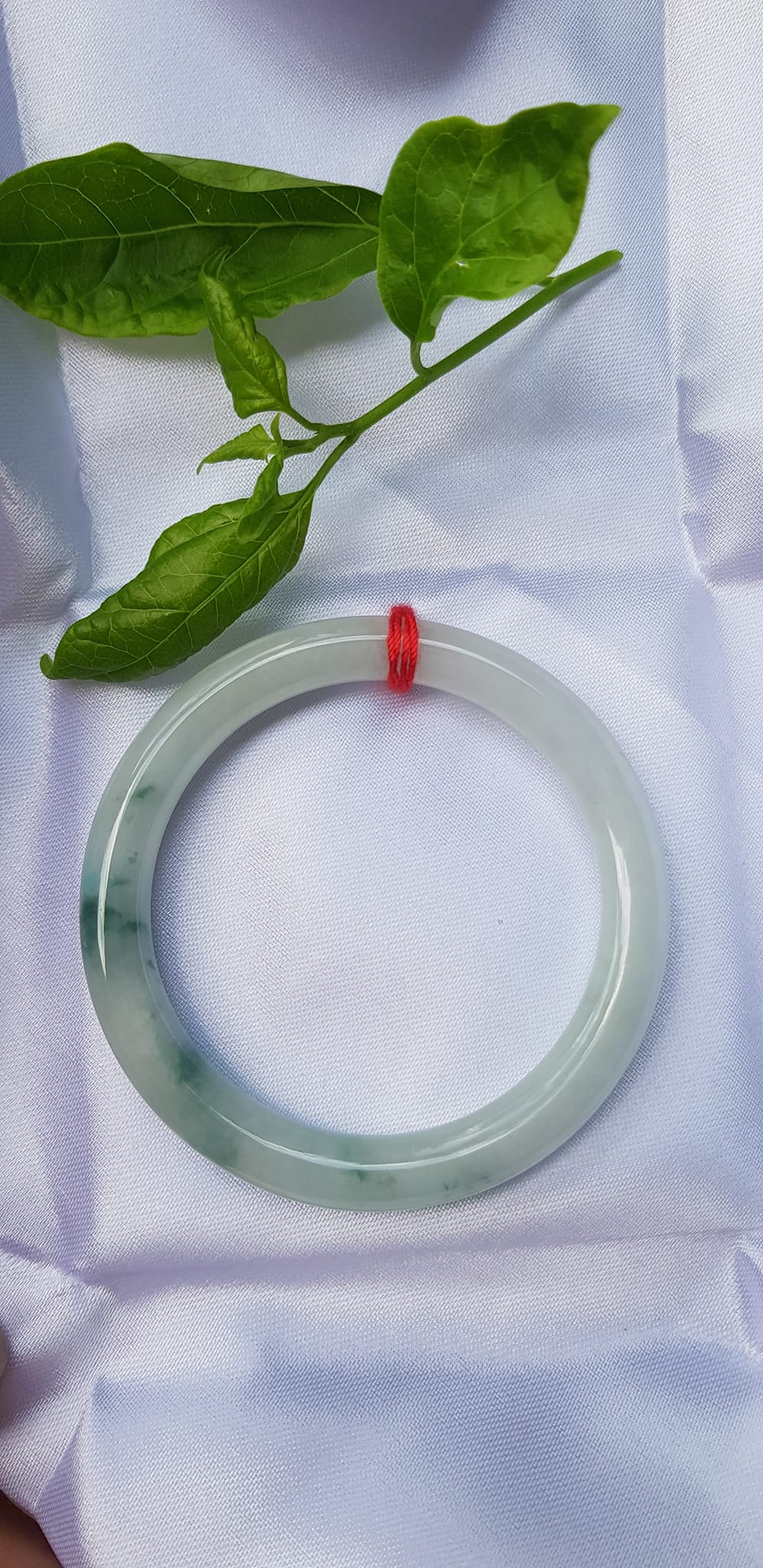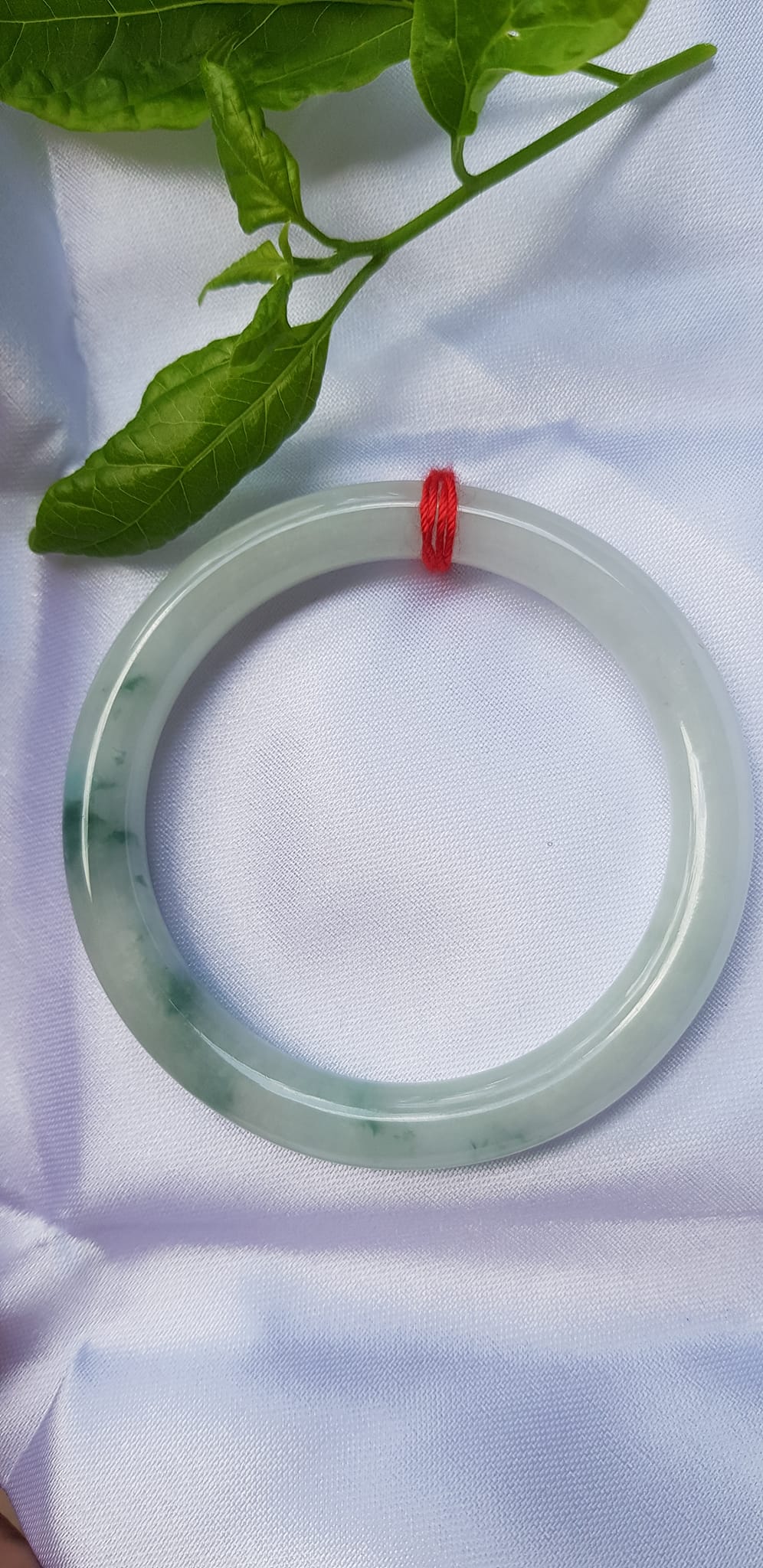 ✨Vòng Tay Đá Ngọc Cẩm Thạch tự nhiên TR LÝ 49mm x cọng 7,2mm Màu bạch ngọc trắng bóng điểm lý xanh rêu rất là đẹp sang Nữ mệnh Kim, mệnh Thủy năngh 47kg - 51kg đeo đẹp ạ