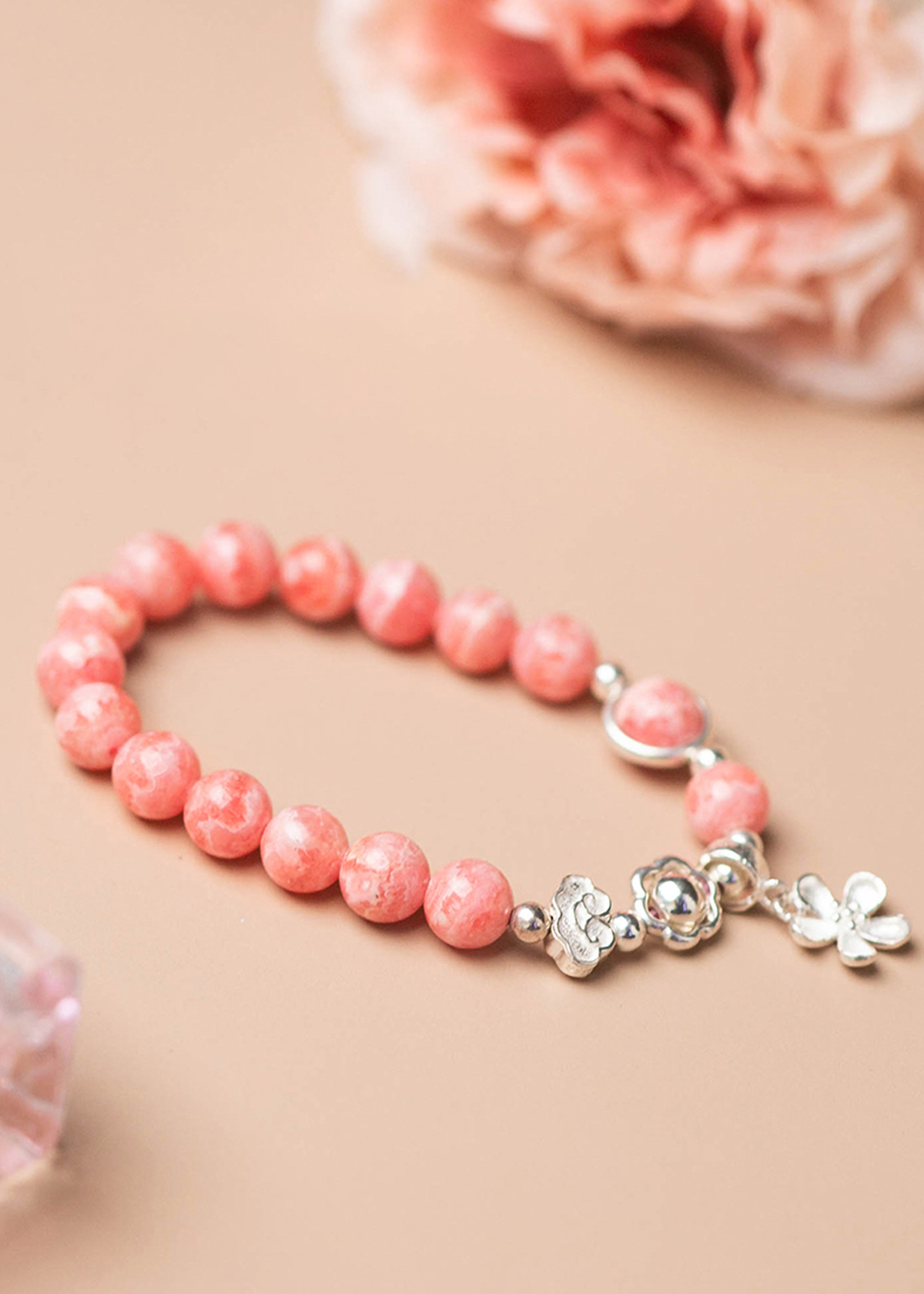 Vòng Tay Đá Rhodochrosite Phối Charm Hoa :