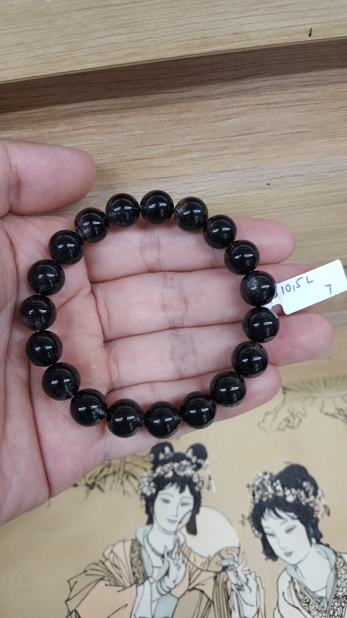 Vòng Tay Đá Thạch Anh Tóc Đen Black Rutilated Quartz Tự Nhiên 11mm. - Đá Thạch Anh Tóc Đen Black Rutilated Quartz Tự Nhiên - Thiết Kế Dây Co Giãn Thoải Mái. - Đá Tự