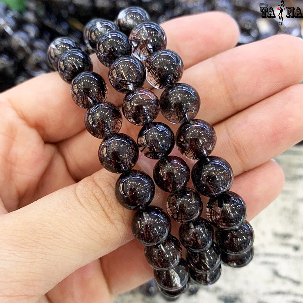 Vòng tay đá thạch anh tóc đen chuẩn đá thiên nhiên chưa qua bất kỳ xử lý nào, cho ra màu sắc thật, rất tốt về mặt phong thủy