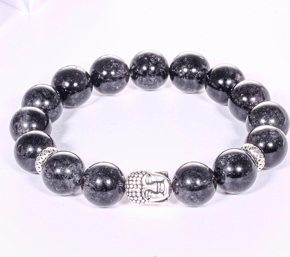 VÒNG TAY NAM ĐÁ THẠCH ANH TÓC ĐEN MIX CHARM PHẬT BẠC: