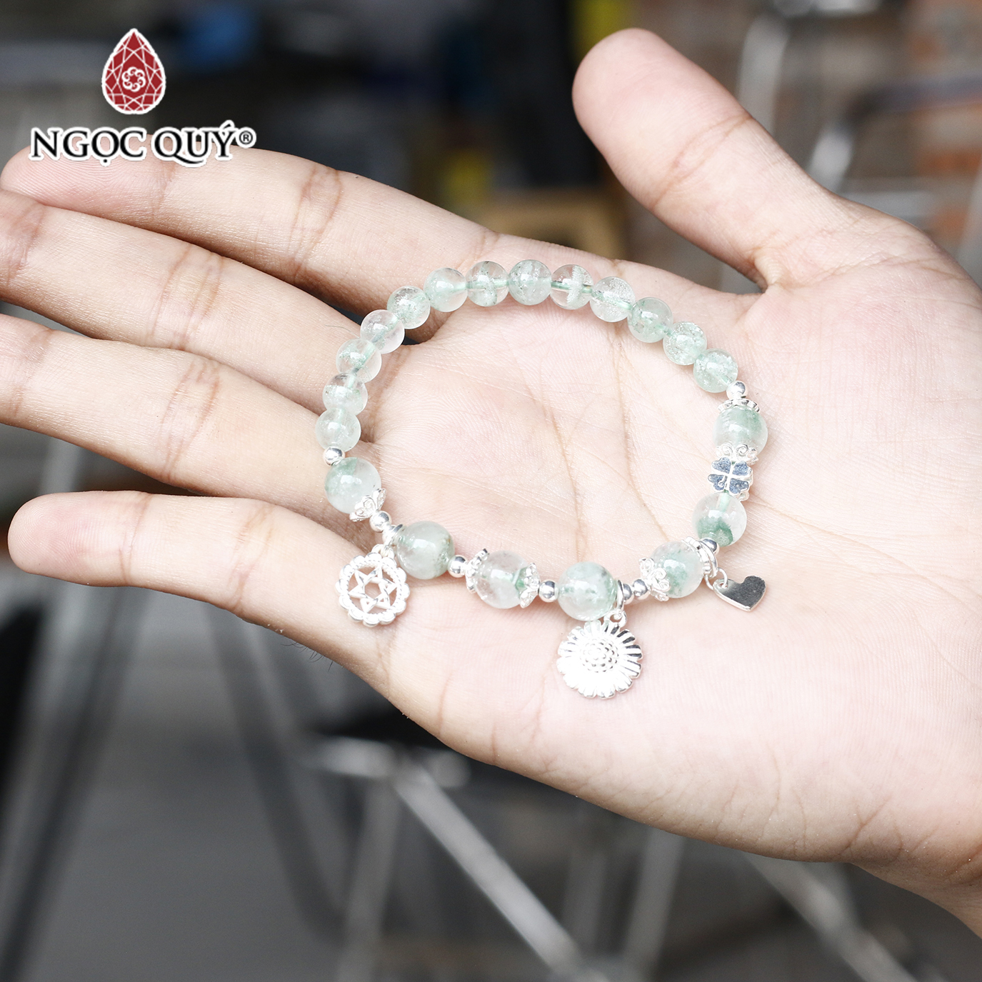 Vòng Tay Đá Thạch Anh Ưu Linh Xanh Phối Charm Hoa Cúc
