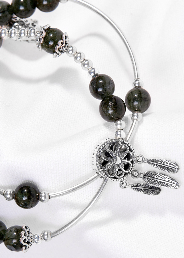 VÒNG TAY 2 LINE ĐÁ THẠCH ANH DÂU PHỐI CHARM HOA BẠC: Thạch Anh Dâu hay "Mũi tên của thần Tinh Yêu" đã không ít lần khiến mỗi ai khi chiêm ngưỡng phải ngạc nhiên