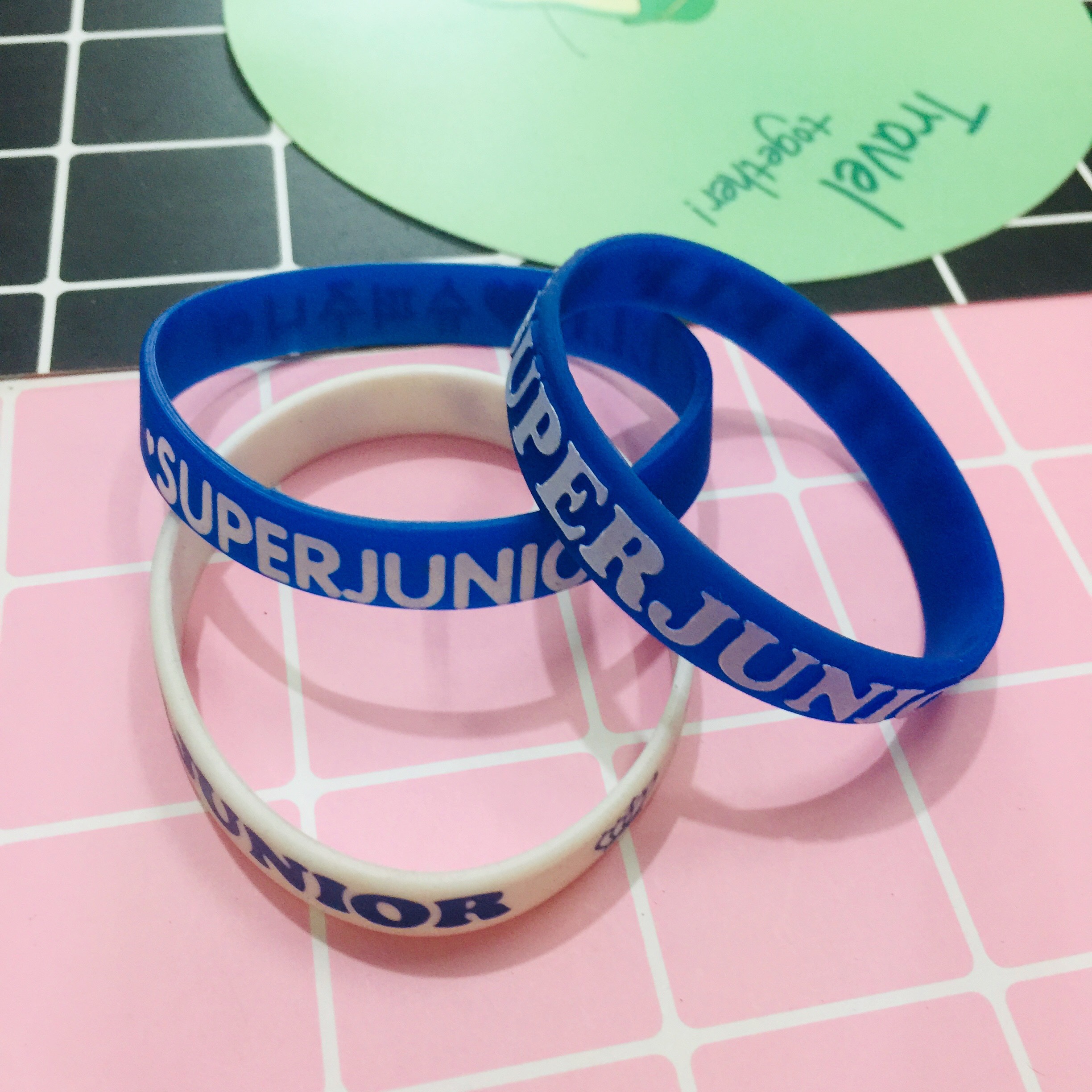 Mua tại TiktokVÒNG TAY. LẮC TAY CAO SU SUPERJUNIOR KPOP COMBO 2 CÁI XANH TRẮNG CHẤT LIỆU CAO SU Thích hợp làm quà tặng