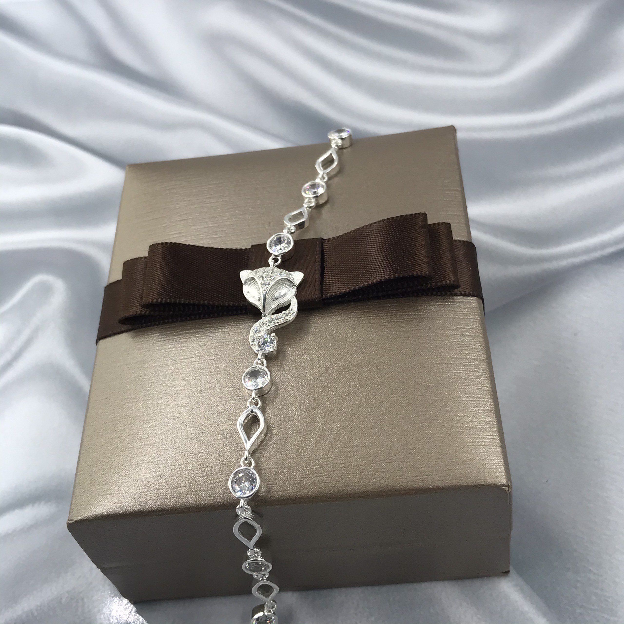 Vòng tay Hồ Ly nhiều nơi gọi là Cáo được làm từ Bạc 925, từ xa xưa Hồ Ly tượng trưng cho sự nhanh nhẹn hoạt bát và sự cuốn hút, một phụ kiện trang sức không thể thiếu cho nàng. Chất liệu Bạc đem lại sự sang trọng và tinh tế.
