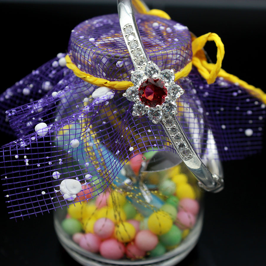 ✨Vòng Tay, Lắc Tay Nữ BẠC HIỂU MINH LTU314 Dạng Kiềng Hoa Đá Đỏ Lấp Lánh